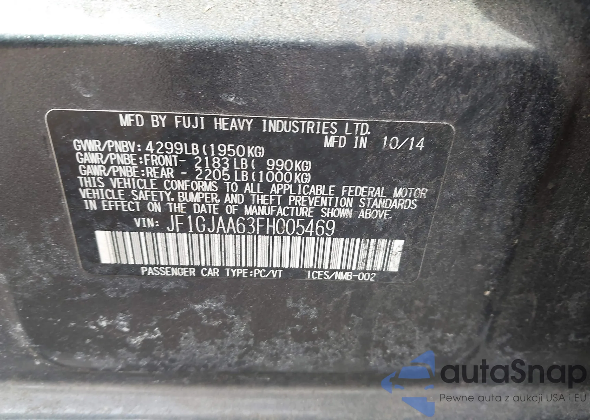 • VIN JF1GJAA63FH005469