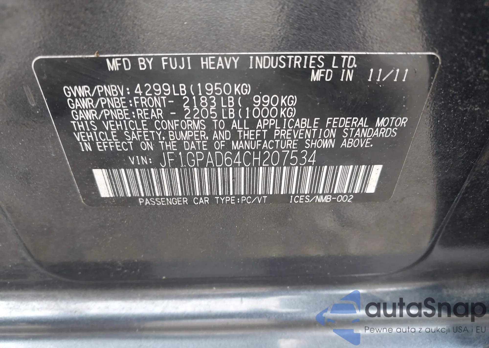 • VIN JF1GPAD64CH207534