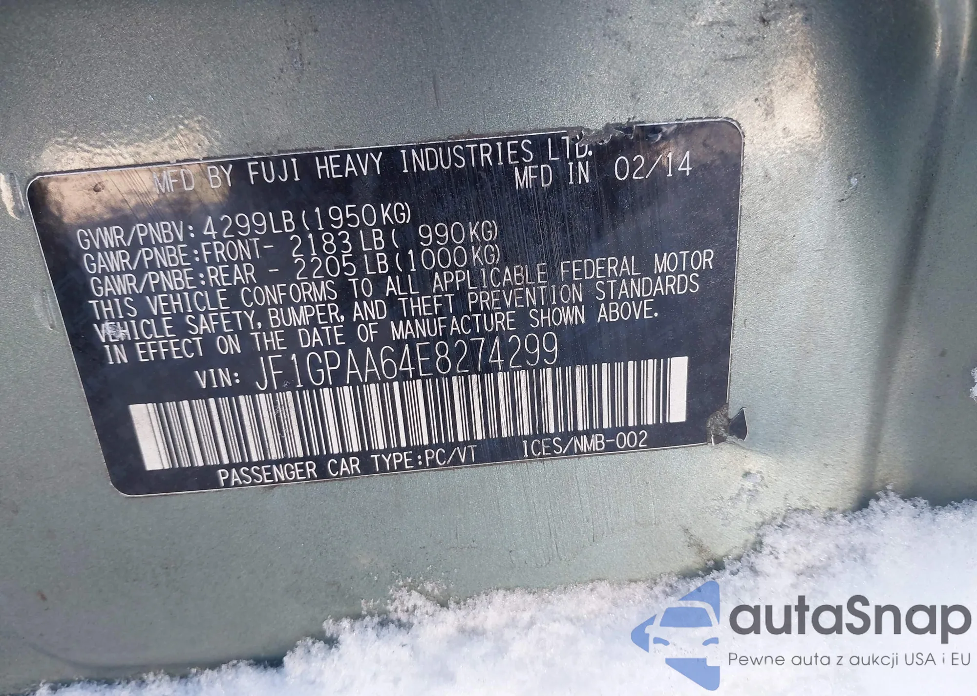• VIN JF1GPAA64E8274299