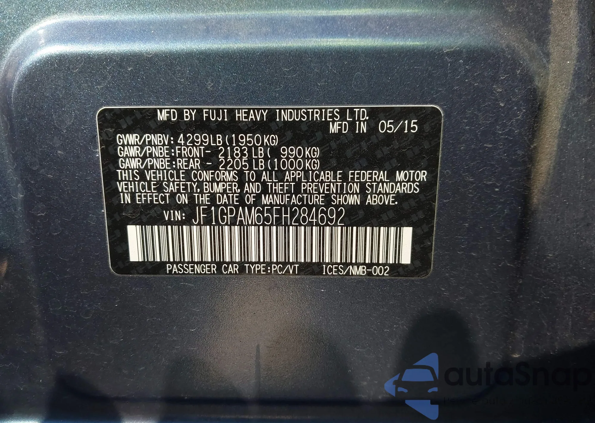 • VIN JF1GPAM65FH284692