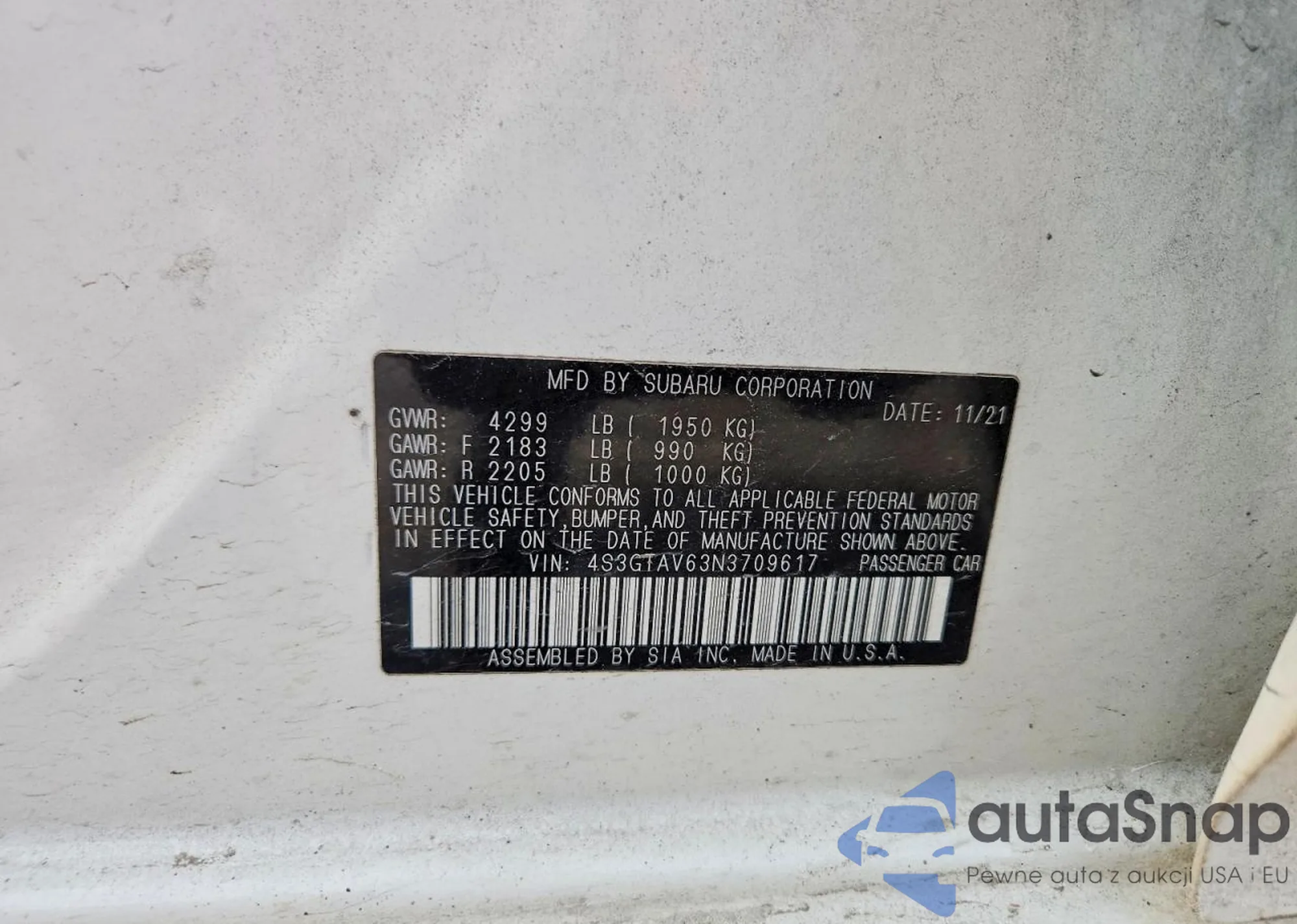 • VIN 4S3GTAV63N3709617