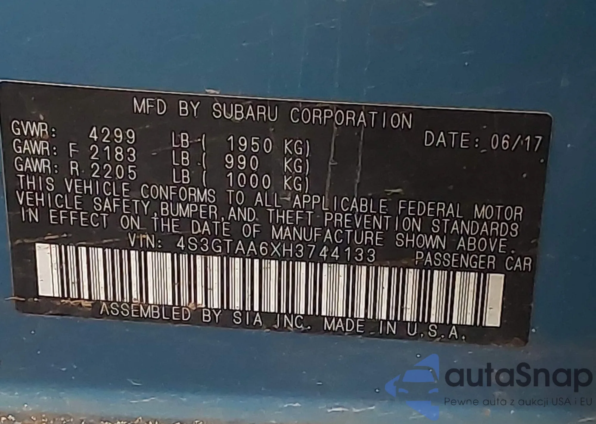 • VIN 4S3GTAA6XH3744133