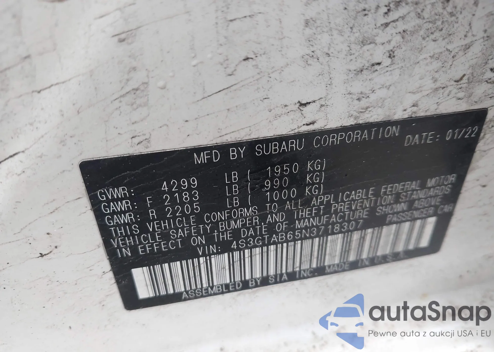 • VIN 4S3GTAB65N3718307