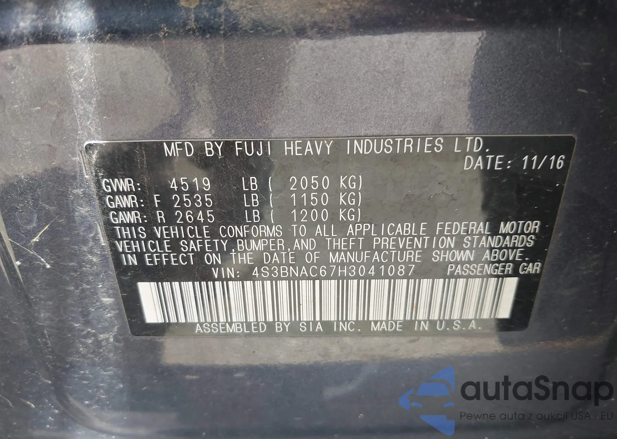 • VIN 4S3BWAB65P3015018