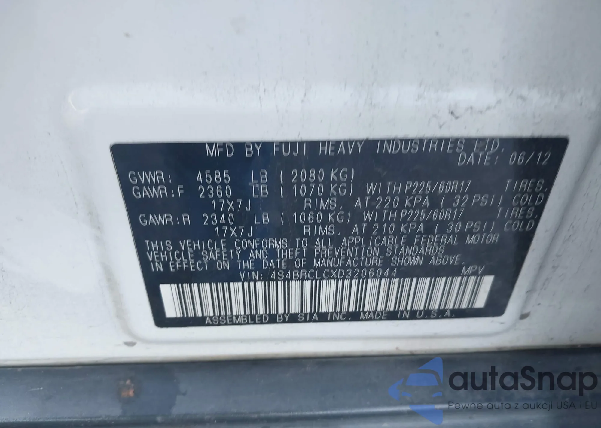 LOT: 43274132 VIN: 4S4BRCLCXD3206044