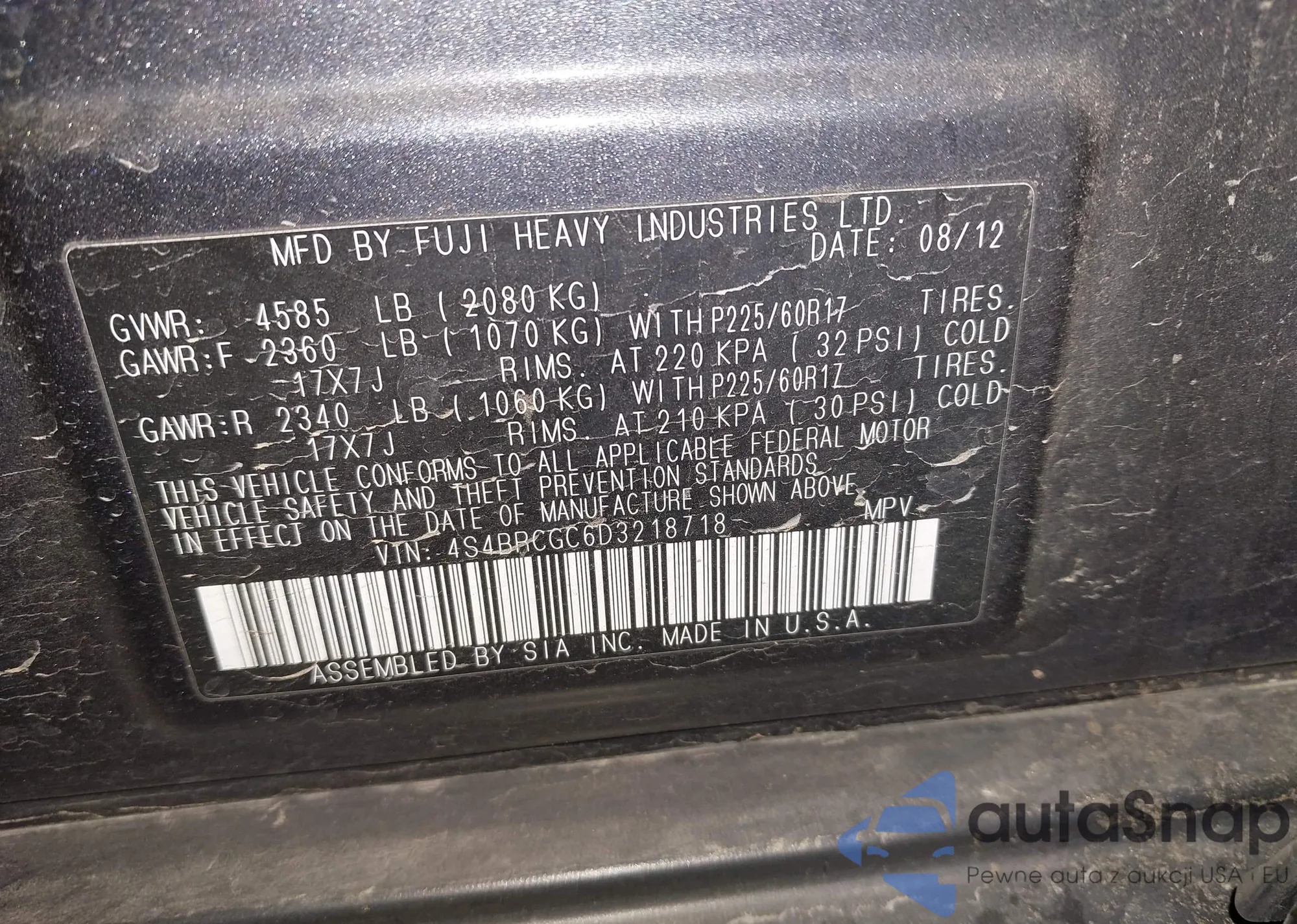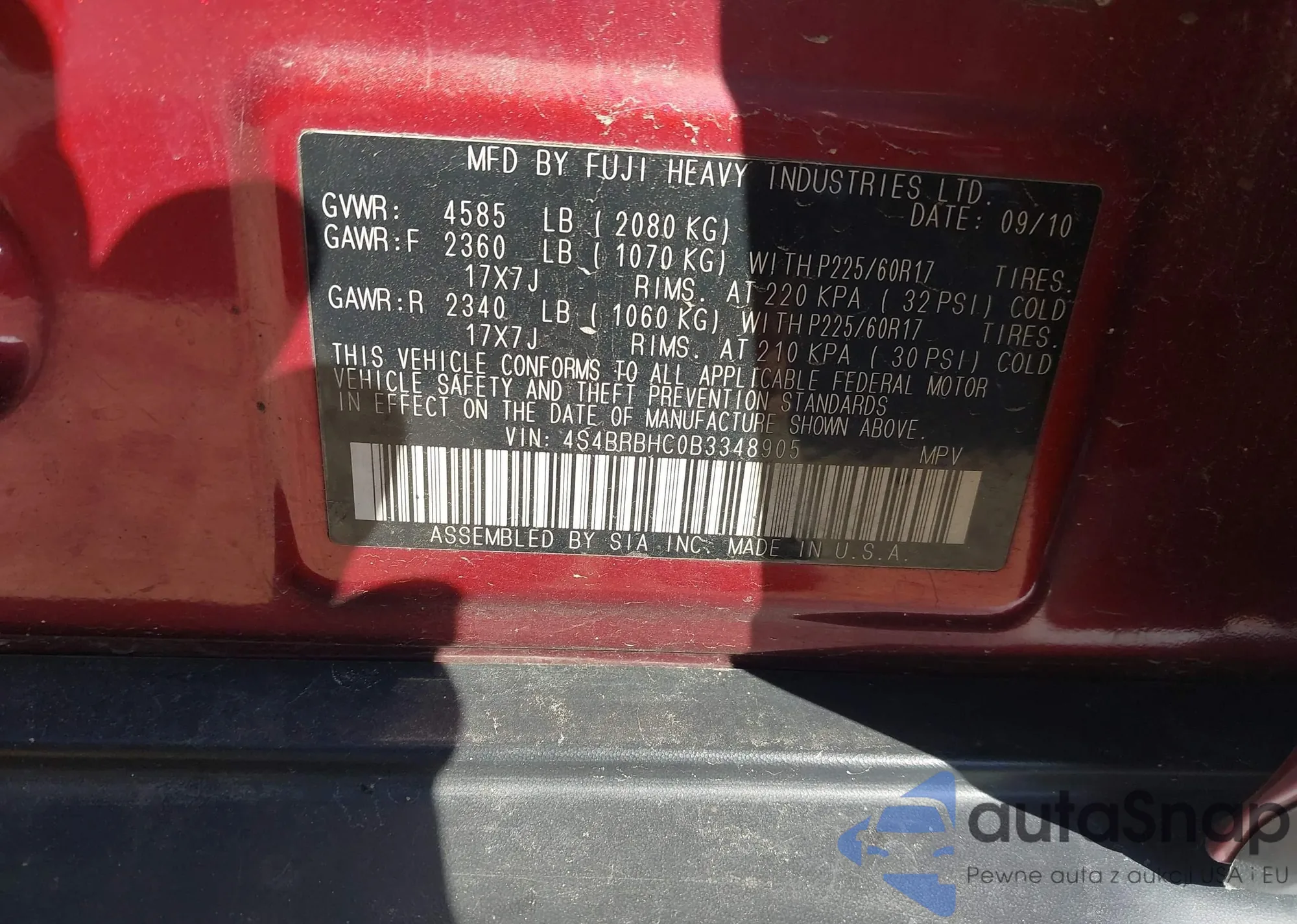 LOT: 43559849 VIN: 4S4BRBAC6A3349985