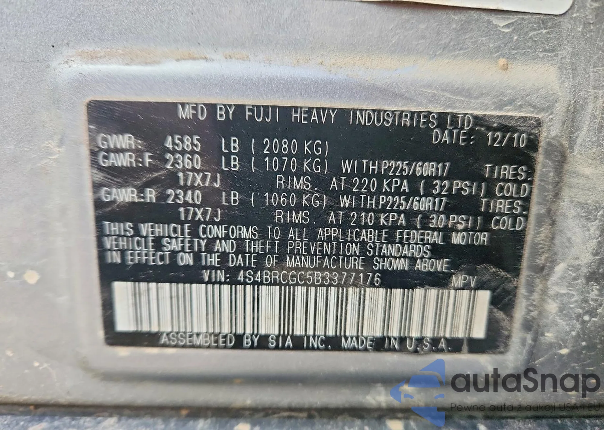 • VIN 4S4BRCGC5B3377176