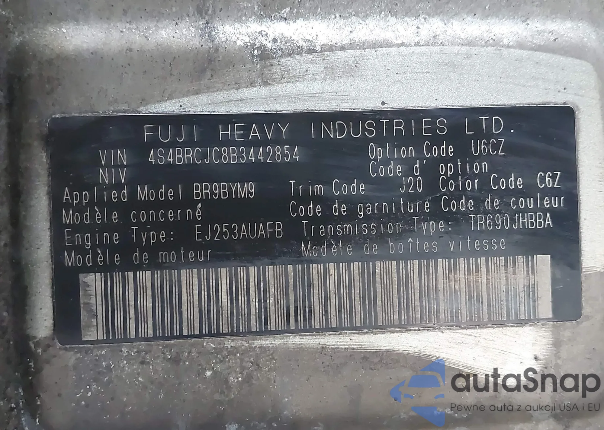 • VIN 4S4BRCJC8B3442854