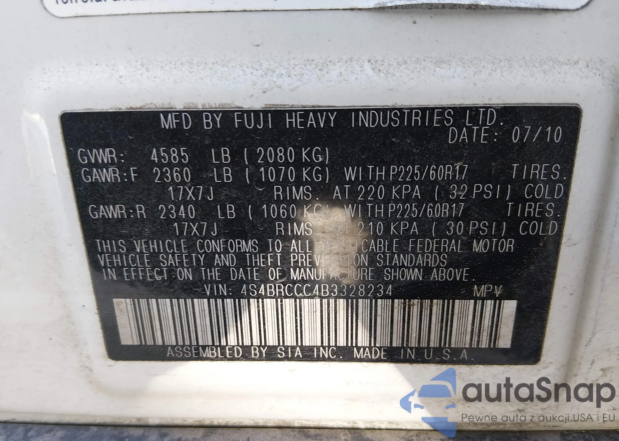 LOT: 44450947 VIN: 4S4BRCCC4B3328234