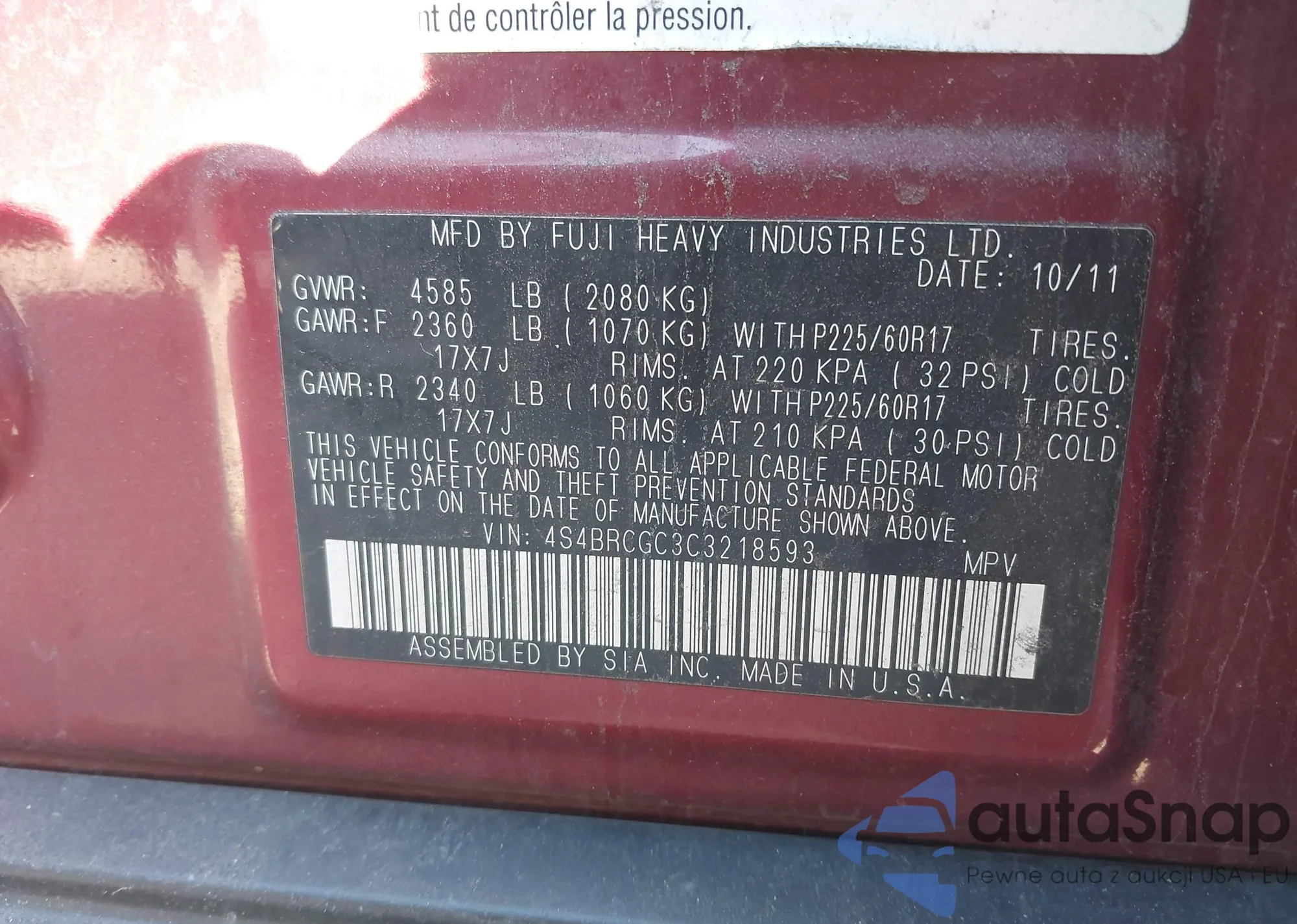 • VIN 4S4BRCGC3C3218593