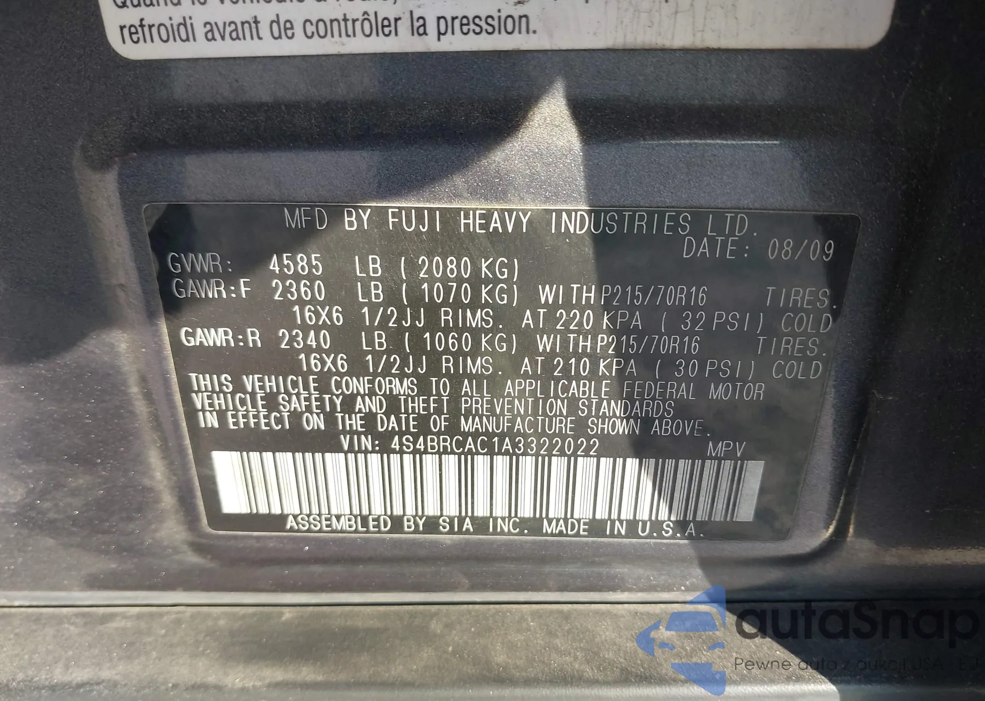 • VIN 4S4BRCAC1A3322022
