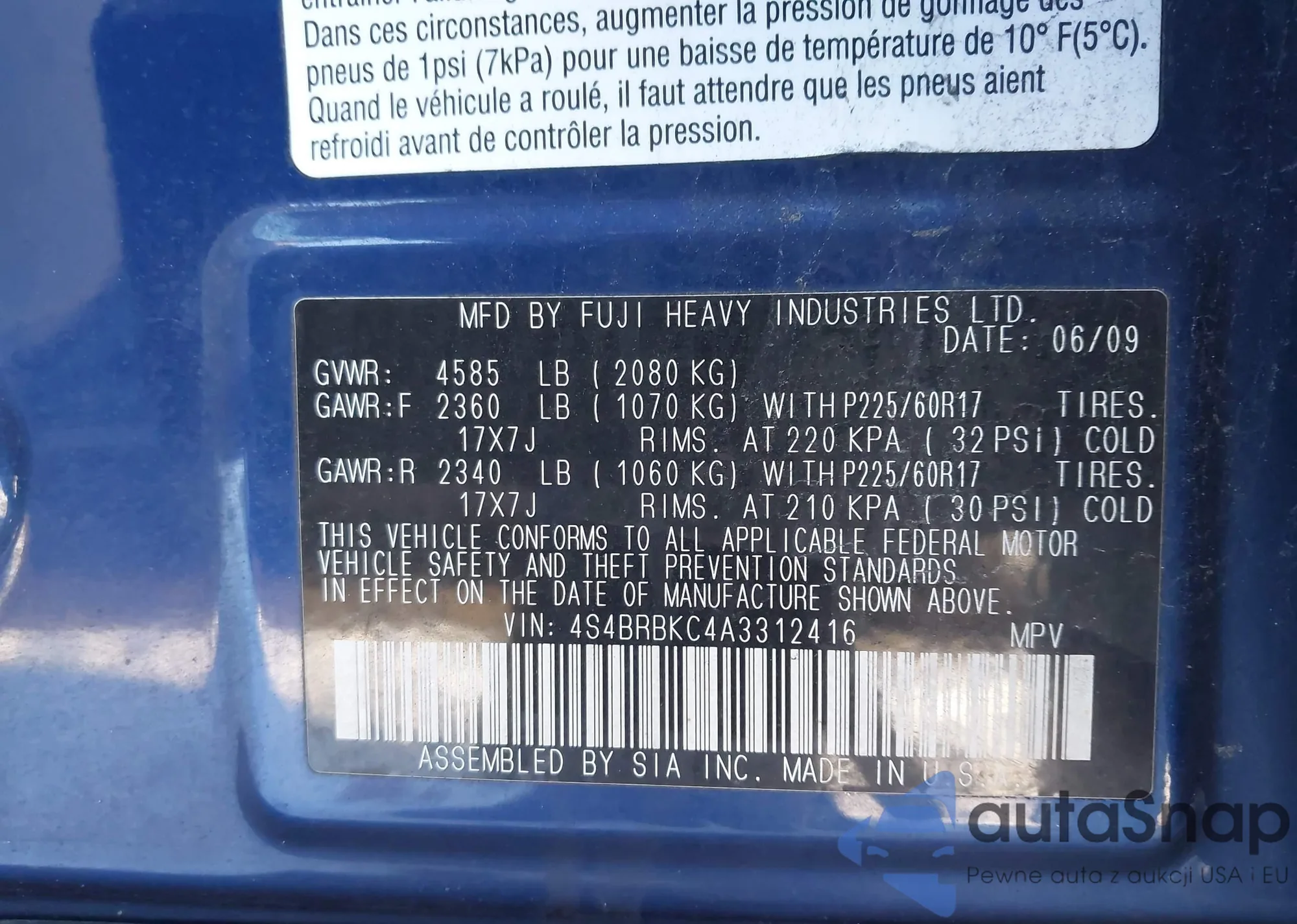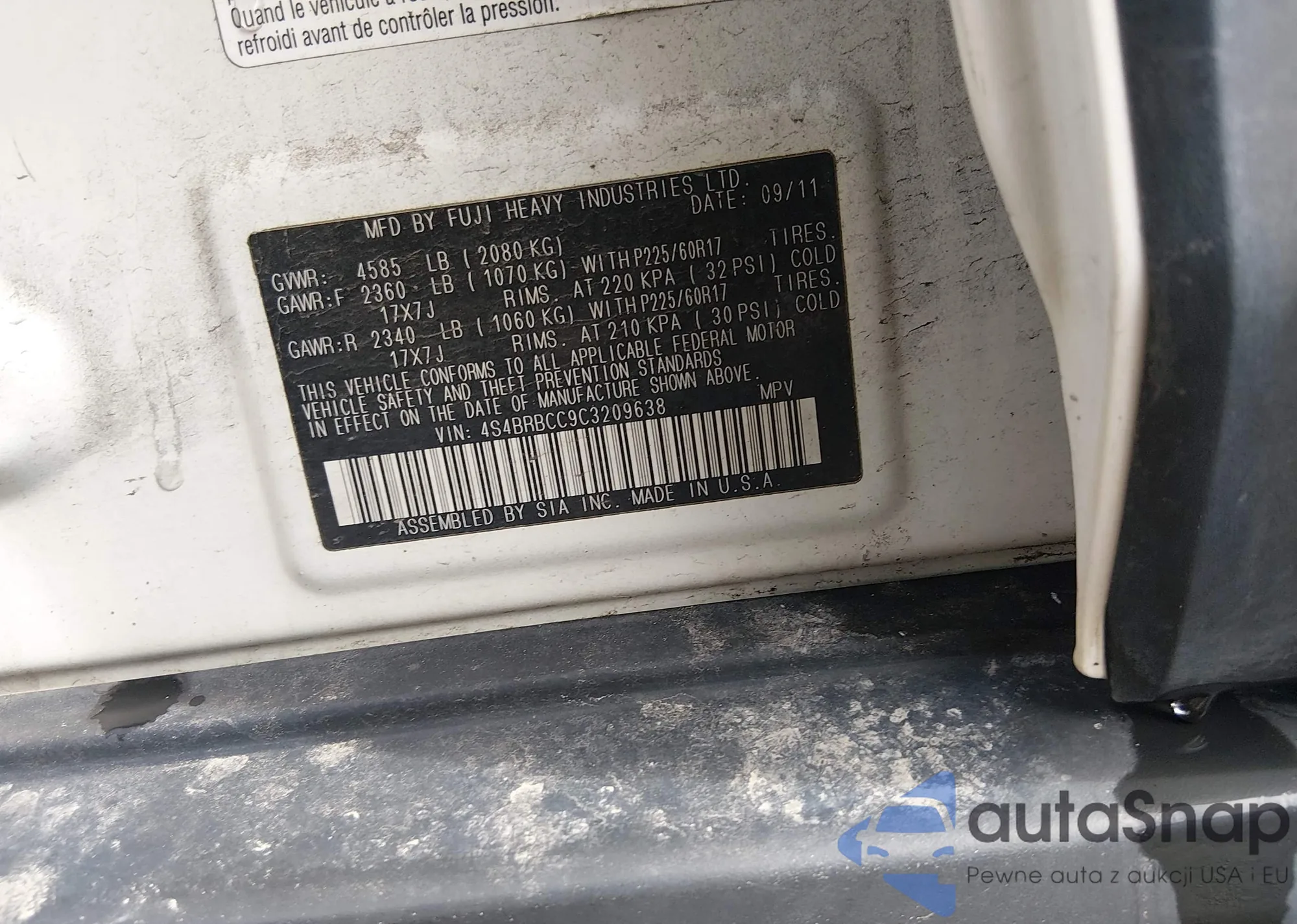 • VIN 4S4BRBCC9C3209638