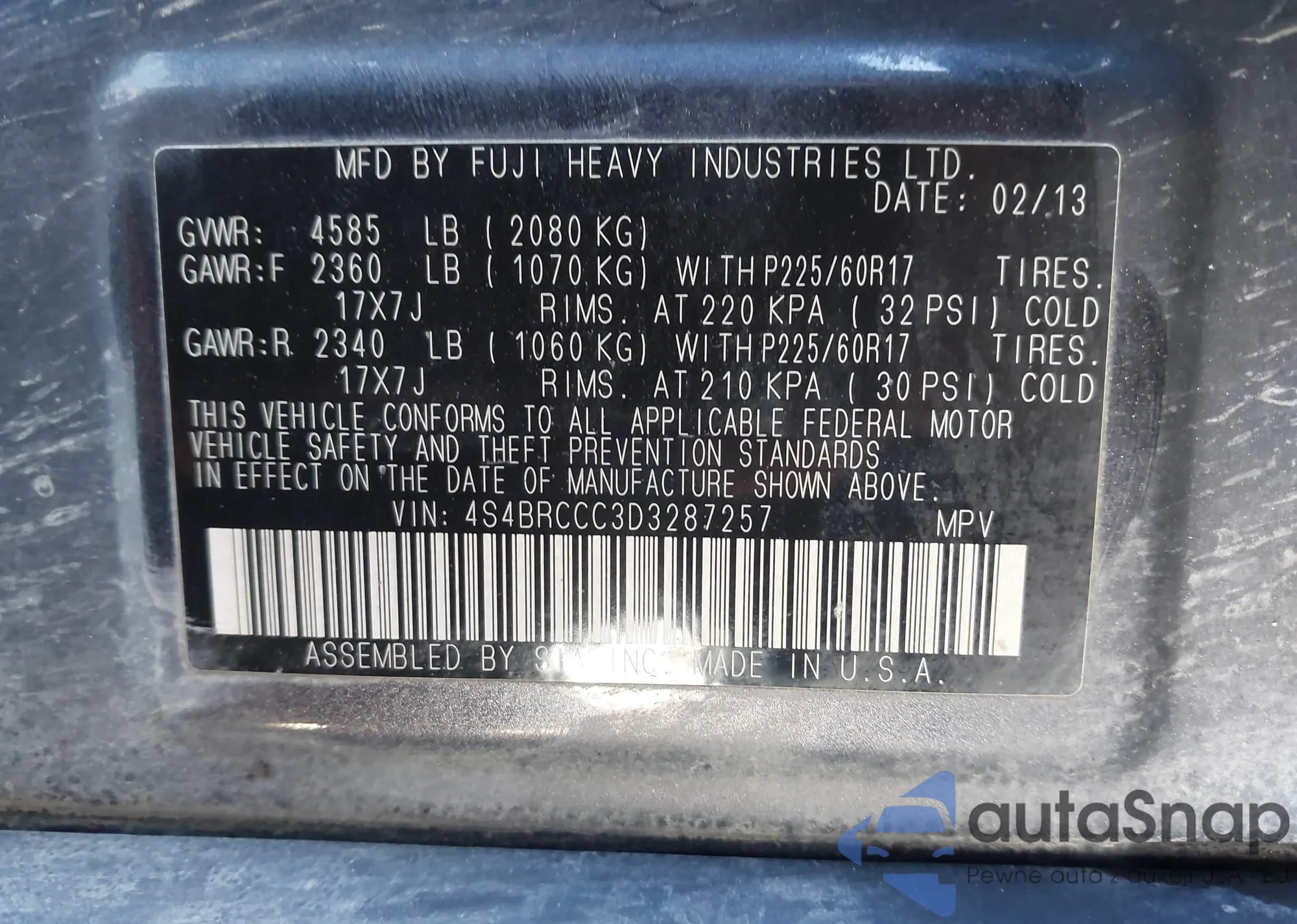 • VIN 4S4BRCCC3D3287257
