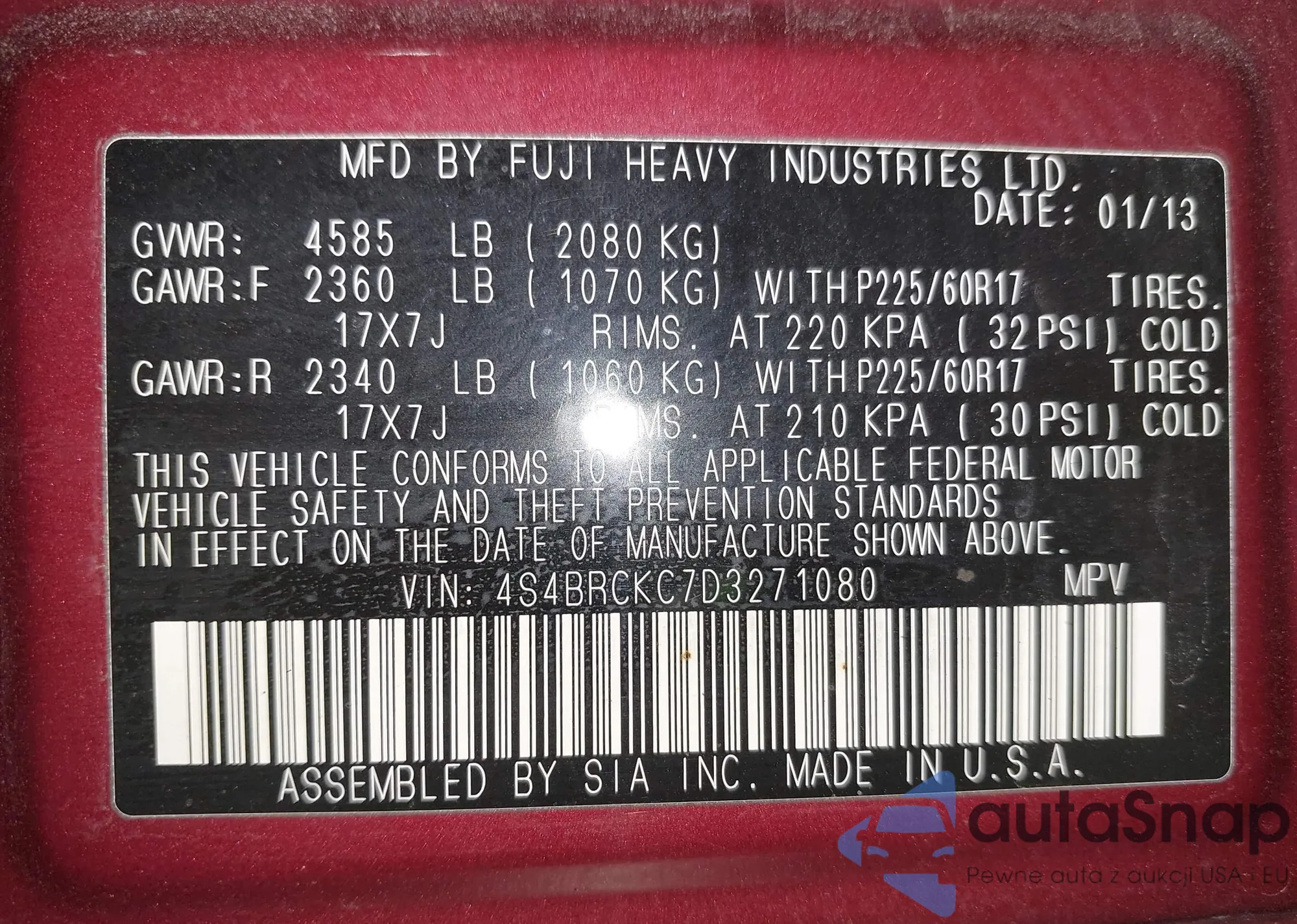 • VIN 4S4BRCKC7D3271080