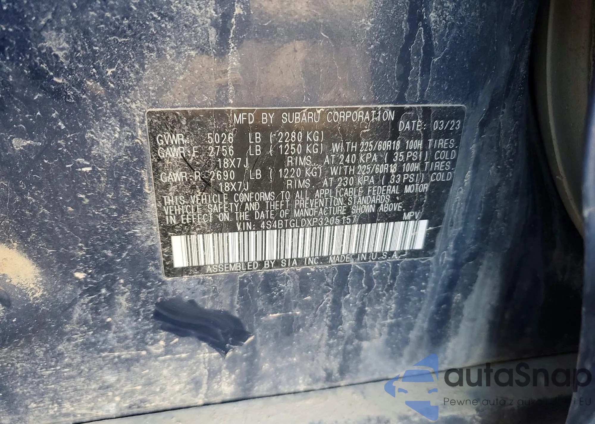 • VIN 4S4BTGLDXP3205157