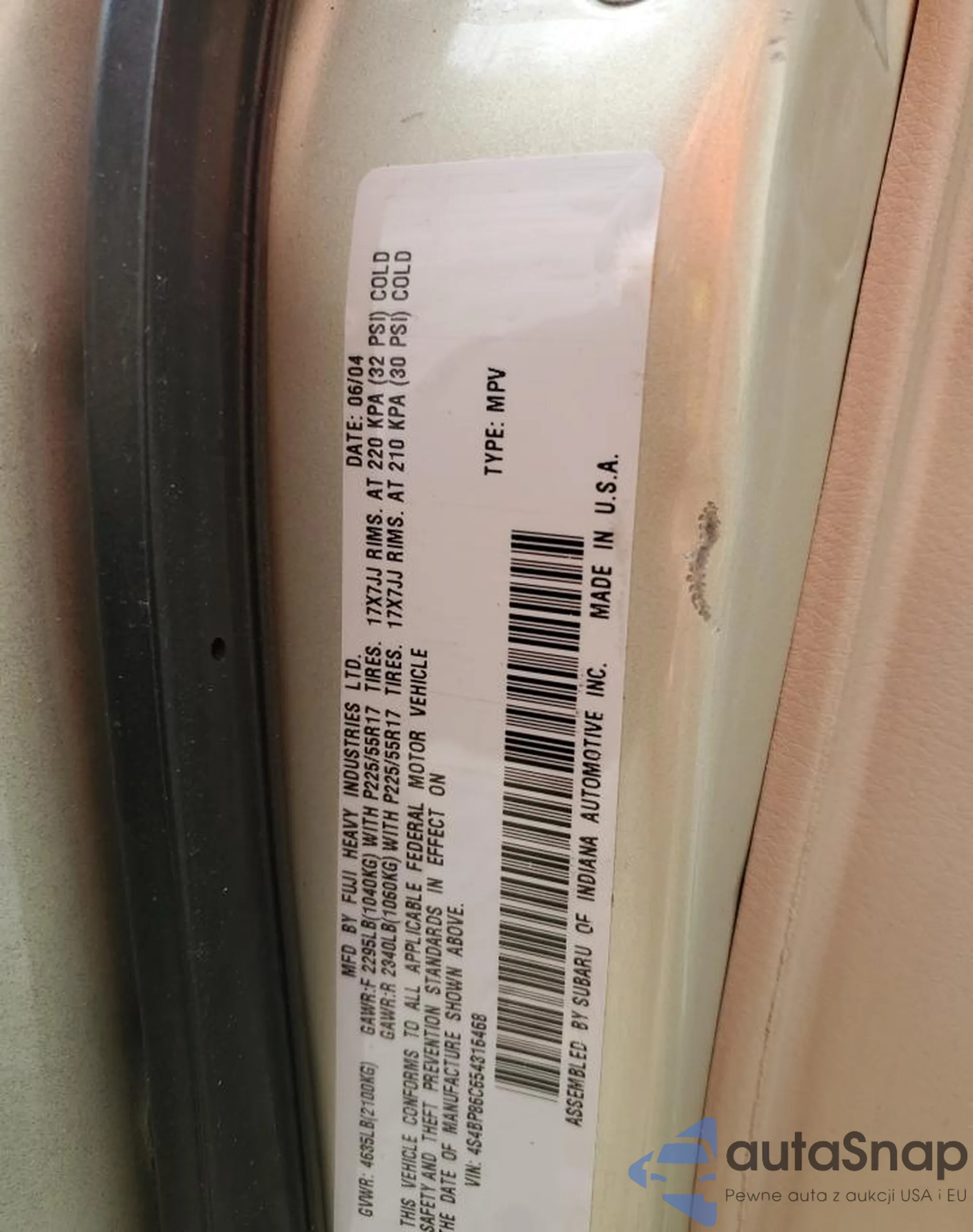 • VIN 4S4BP86C654316468