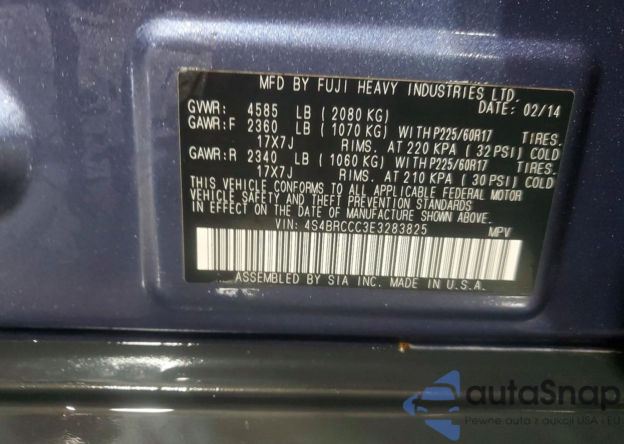 • VIN 4S4BRCCC3E3283825