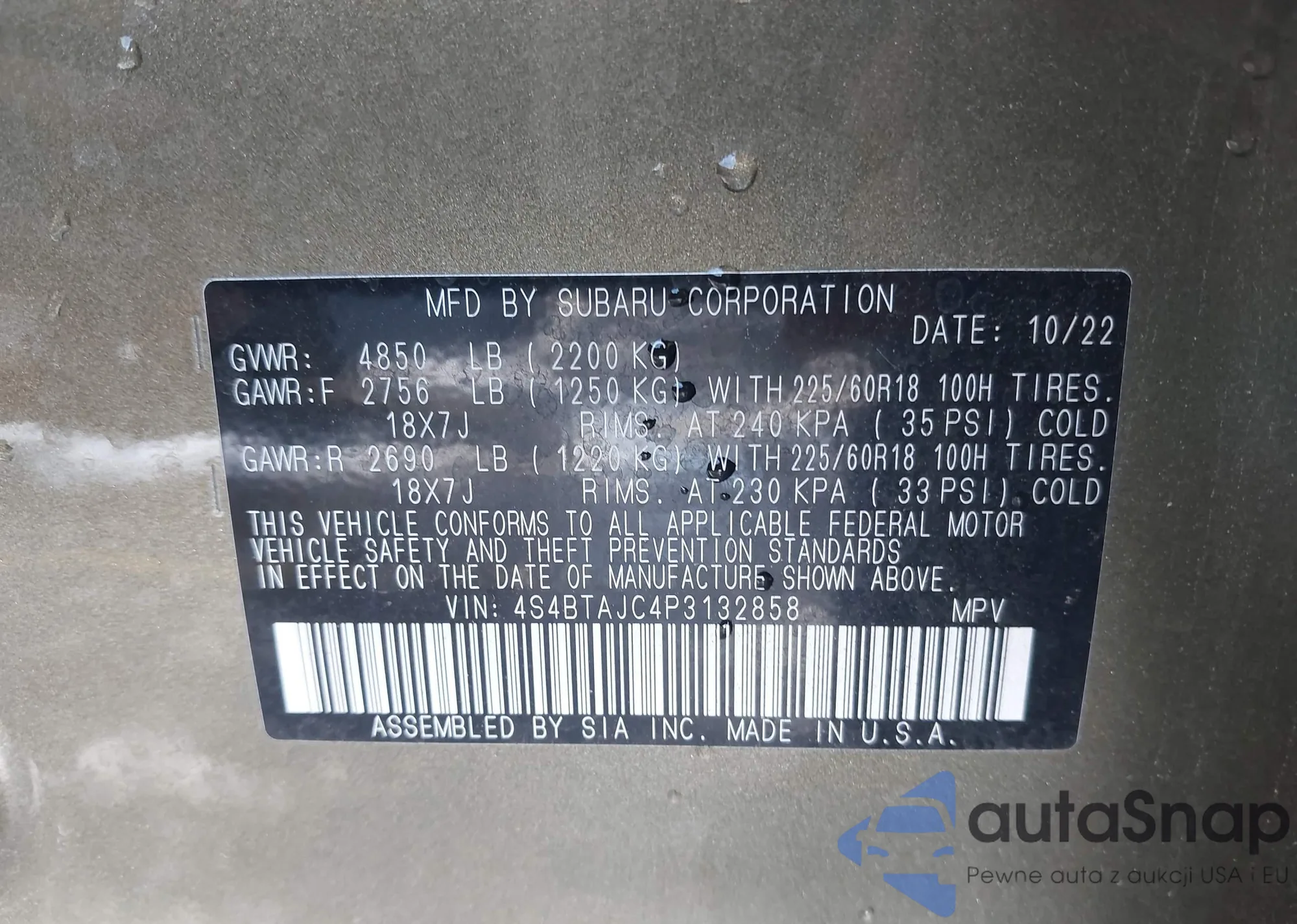 • VIN 4S4BTAJC4P3132858