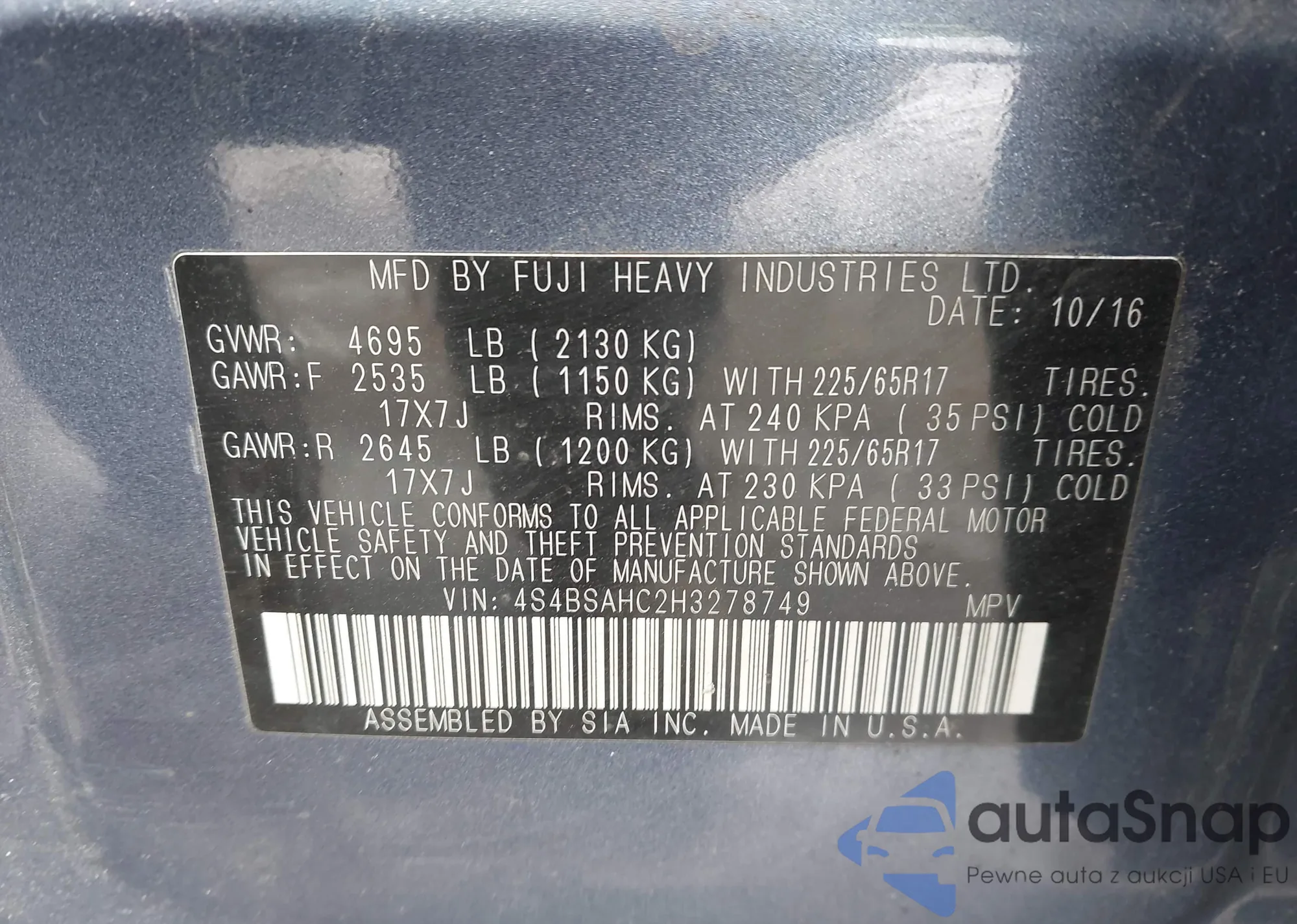 • VIN 4S4BSAHC2H3278749