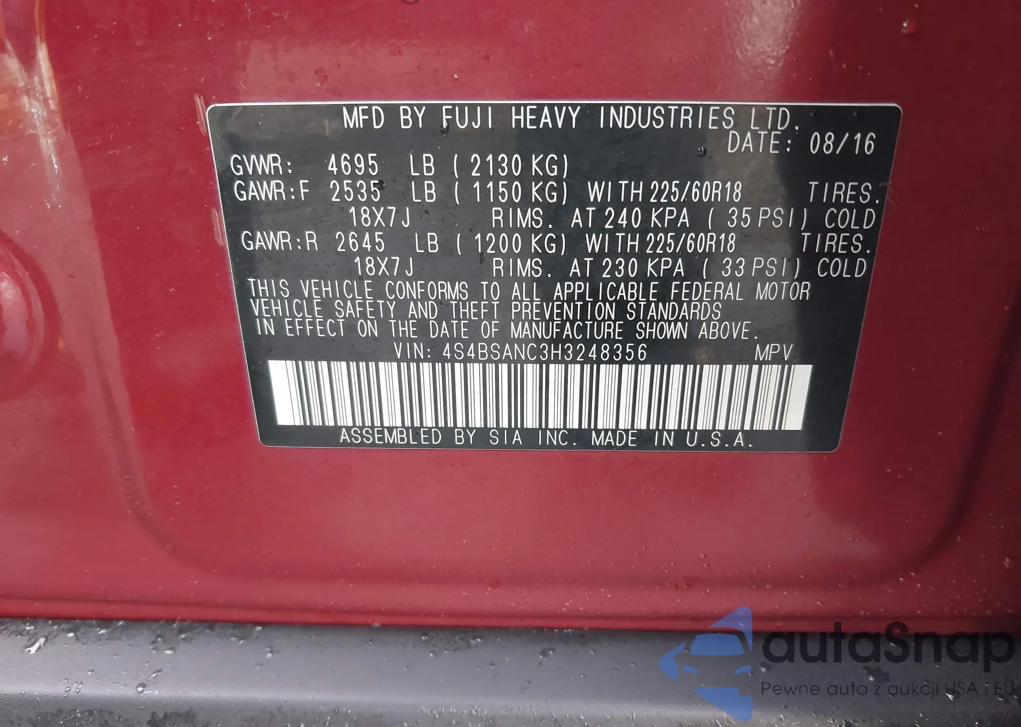 • VIN 4S4BSANC3H3248356