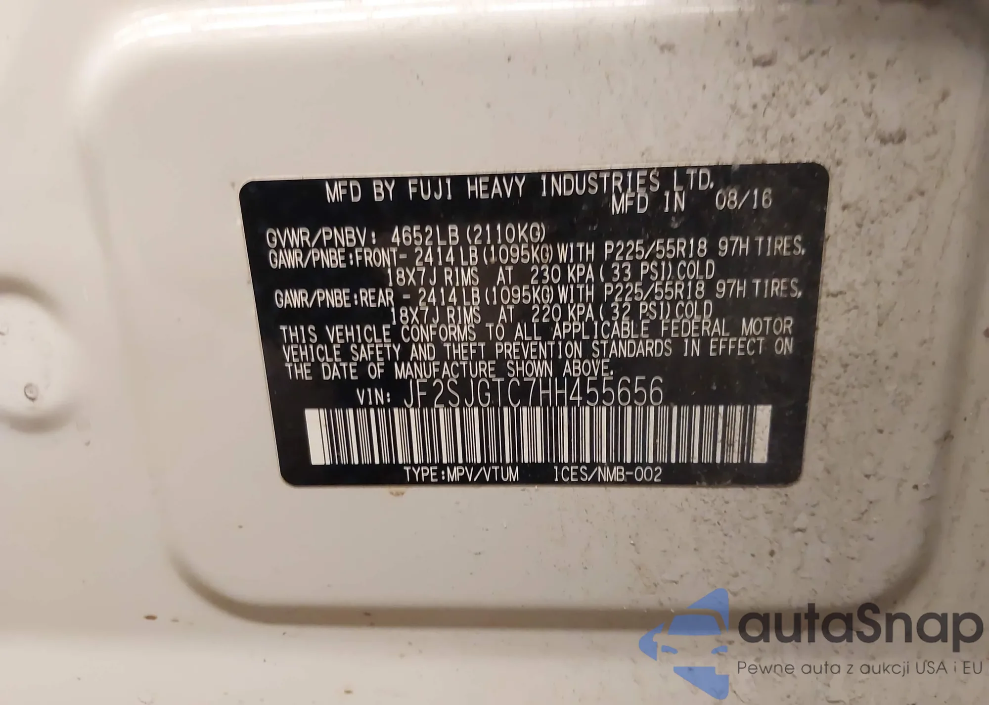 • VIN JF2SJGTC7HH455656