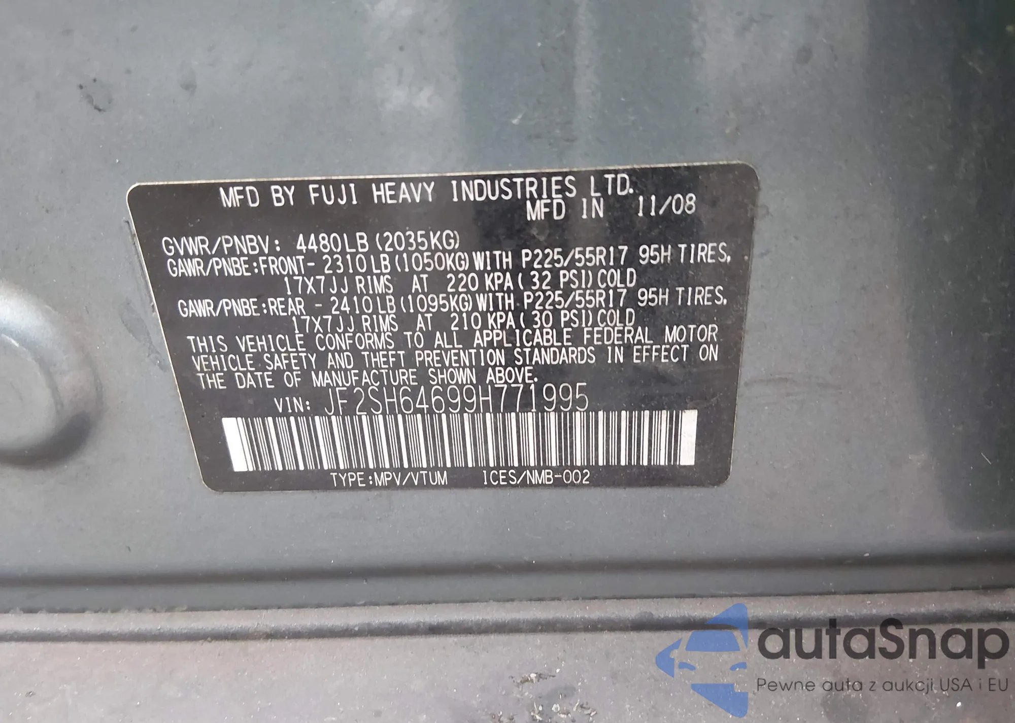 • VIN JF2SH64699H771995