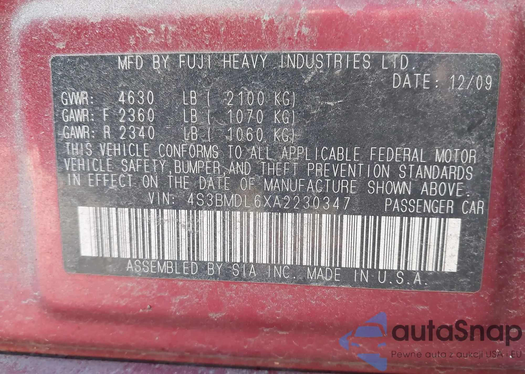 • VIN 4S3BMDL6XA2230347