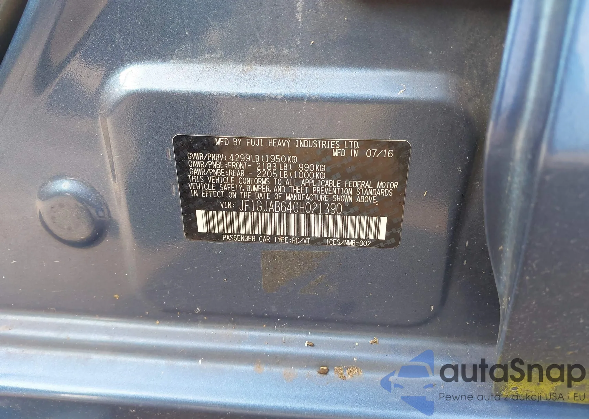 • VIN JF1GJAB64GH021390