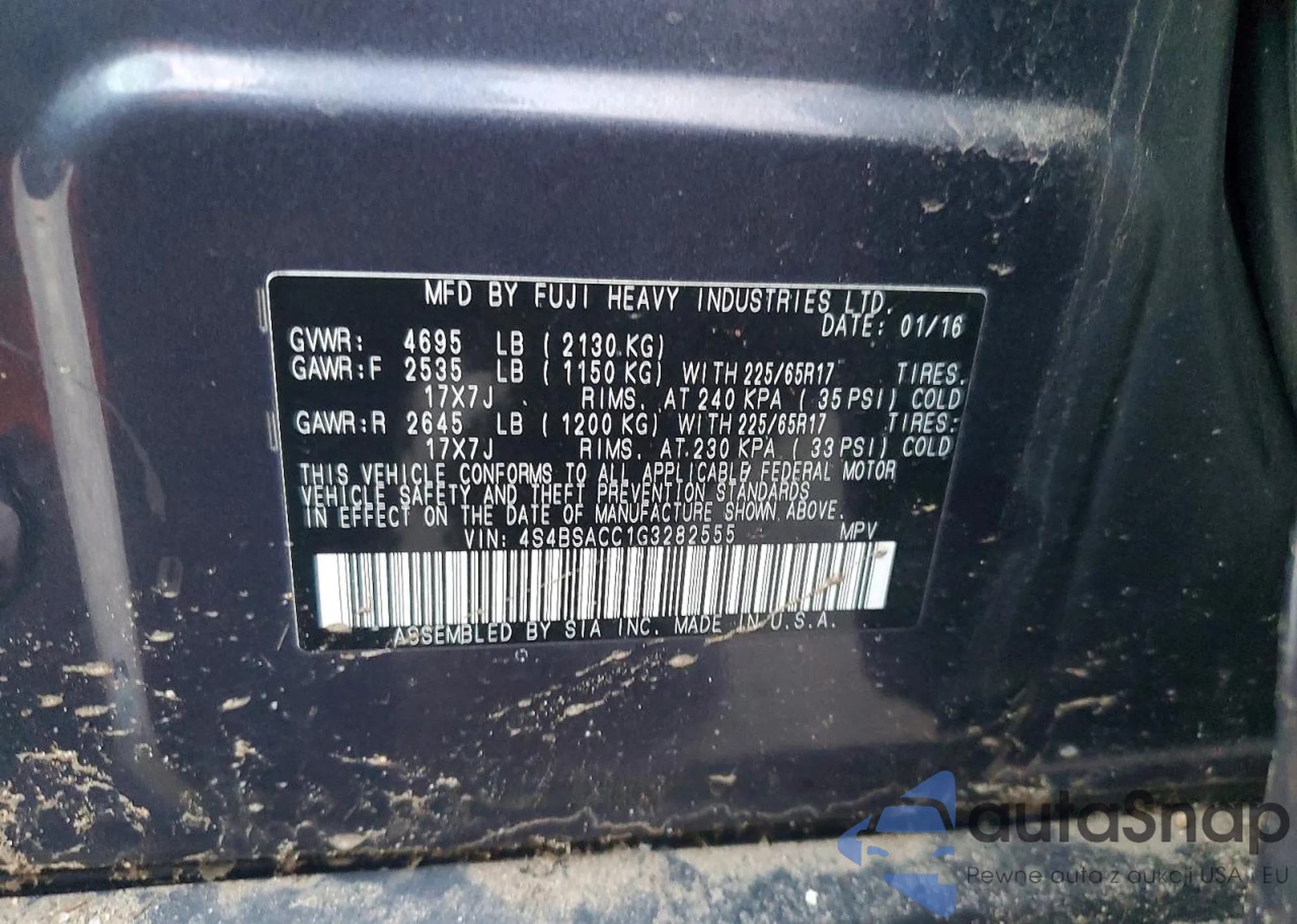 LOT: 72603985 VIN: 4S4BSACC1G3282555