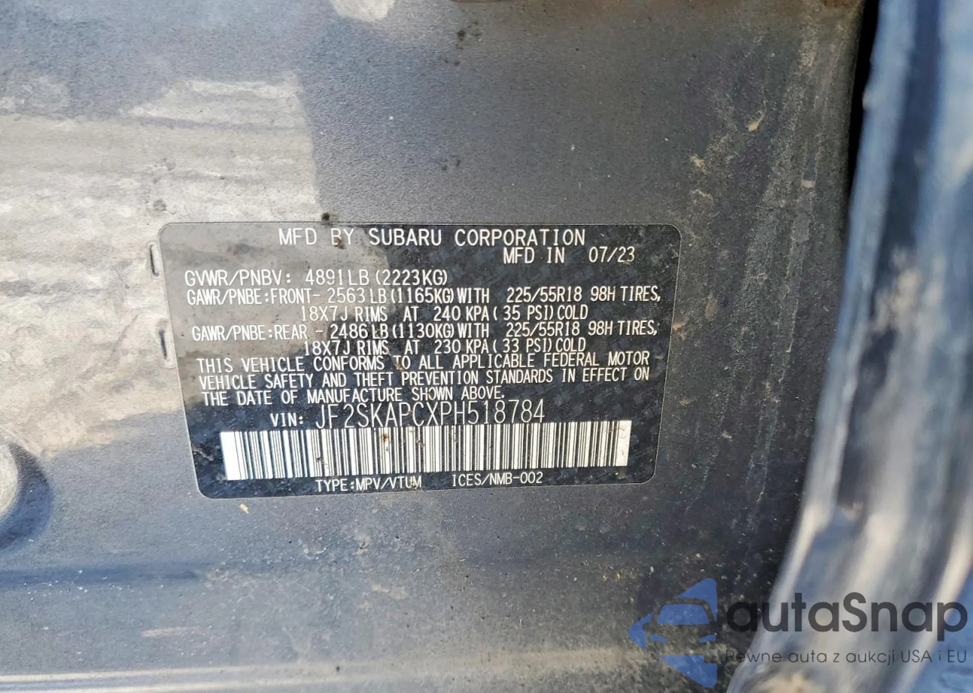 • VIN JF2SKAPCXPH518784