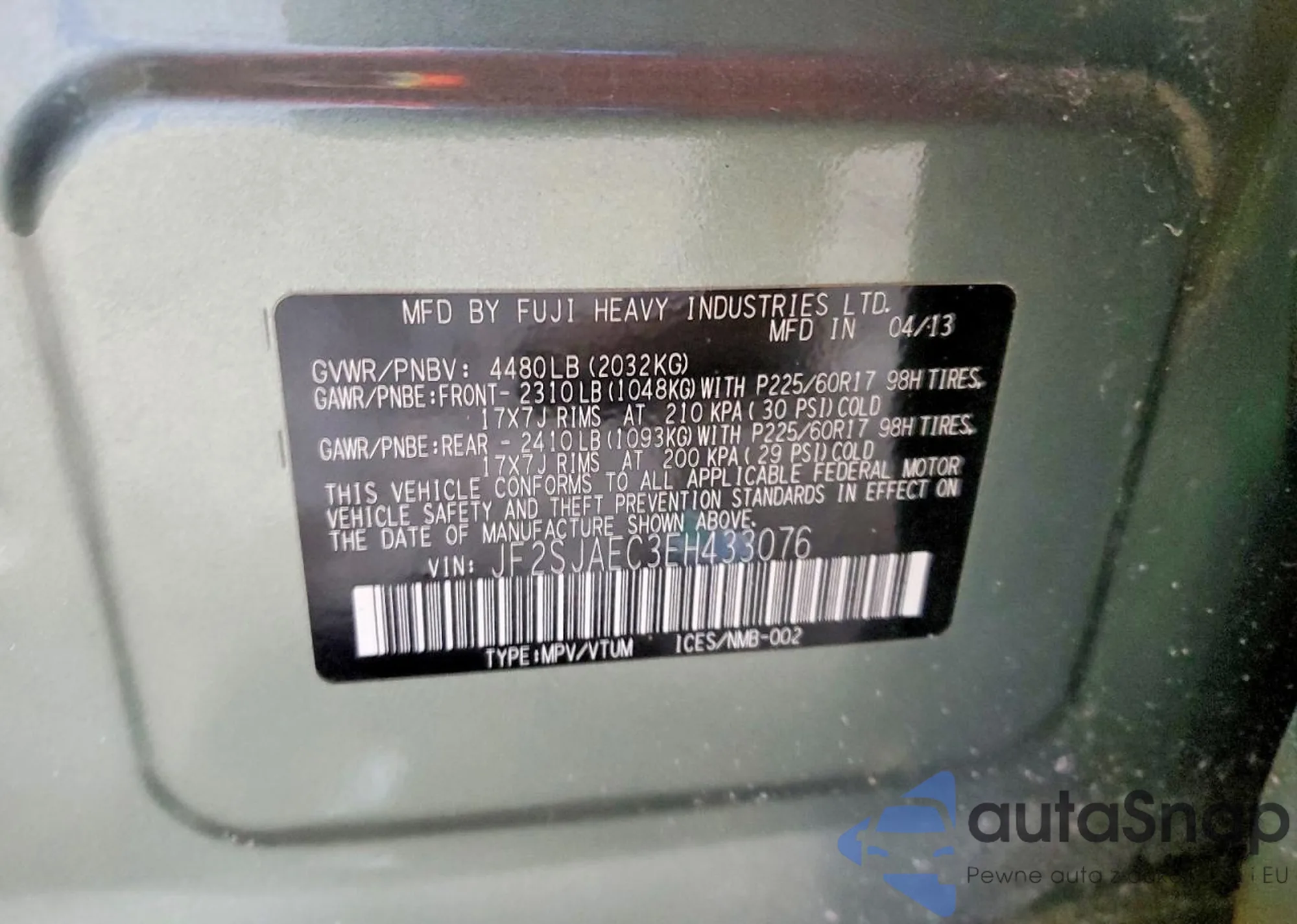 • VIN JF2SJAEC3EH433076