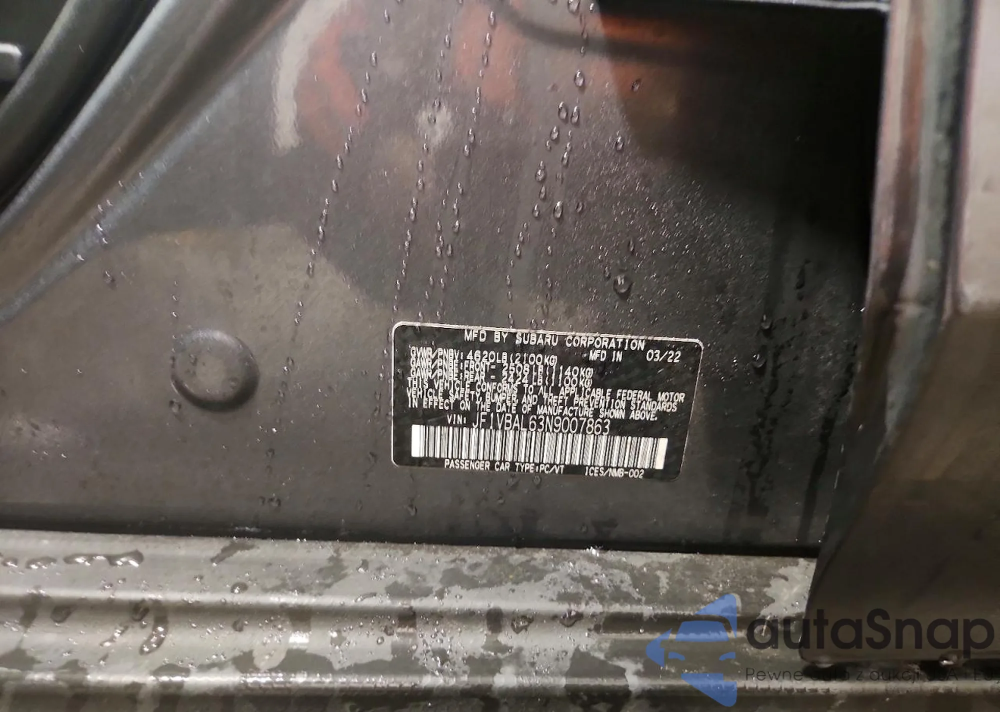 LOT: 75798885 VIN: JF1VBAL63N9007863