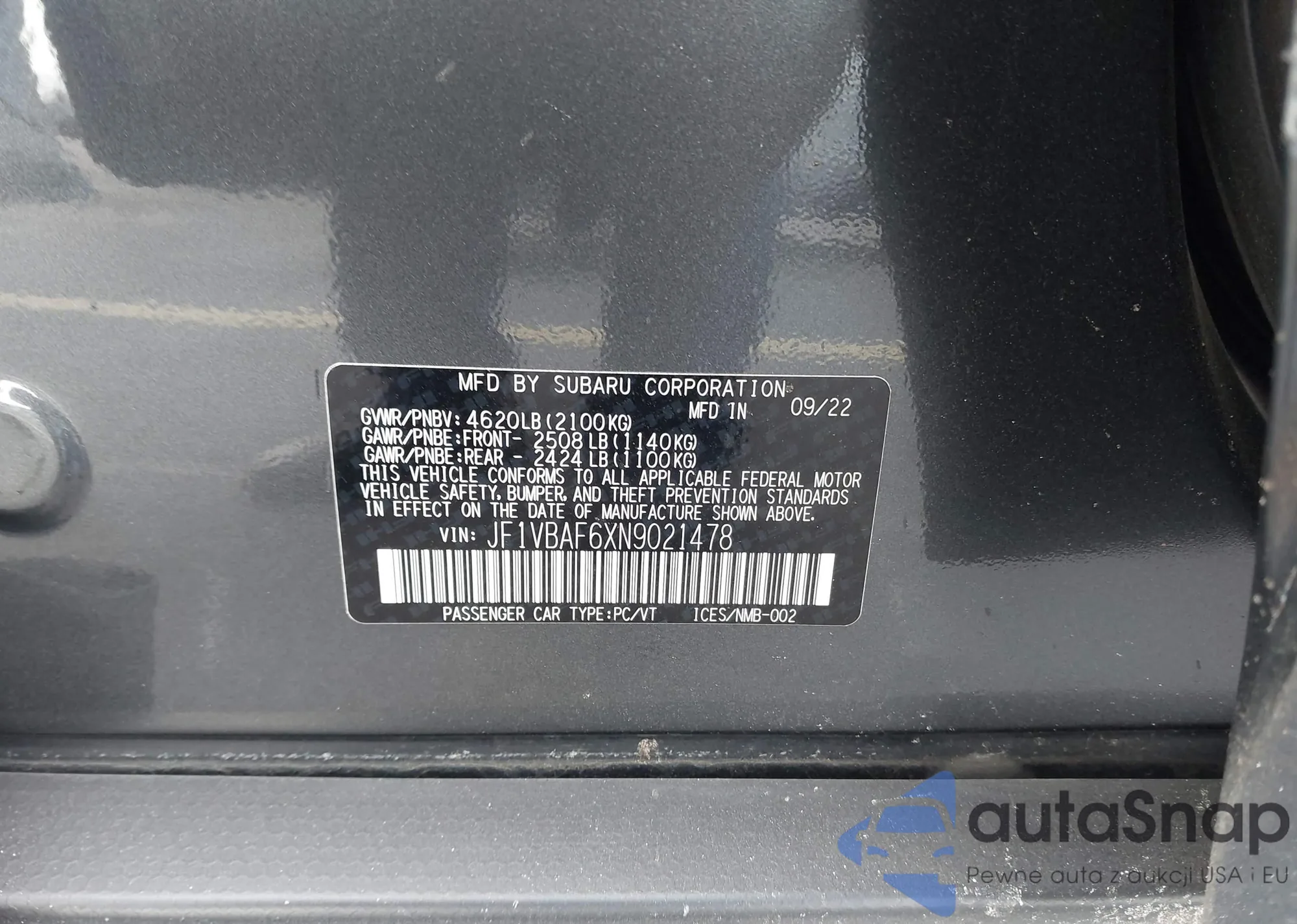 • VIN JF1VBAF6XN9021478