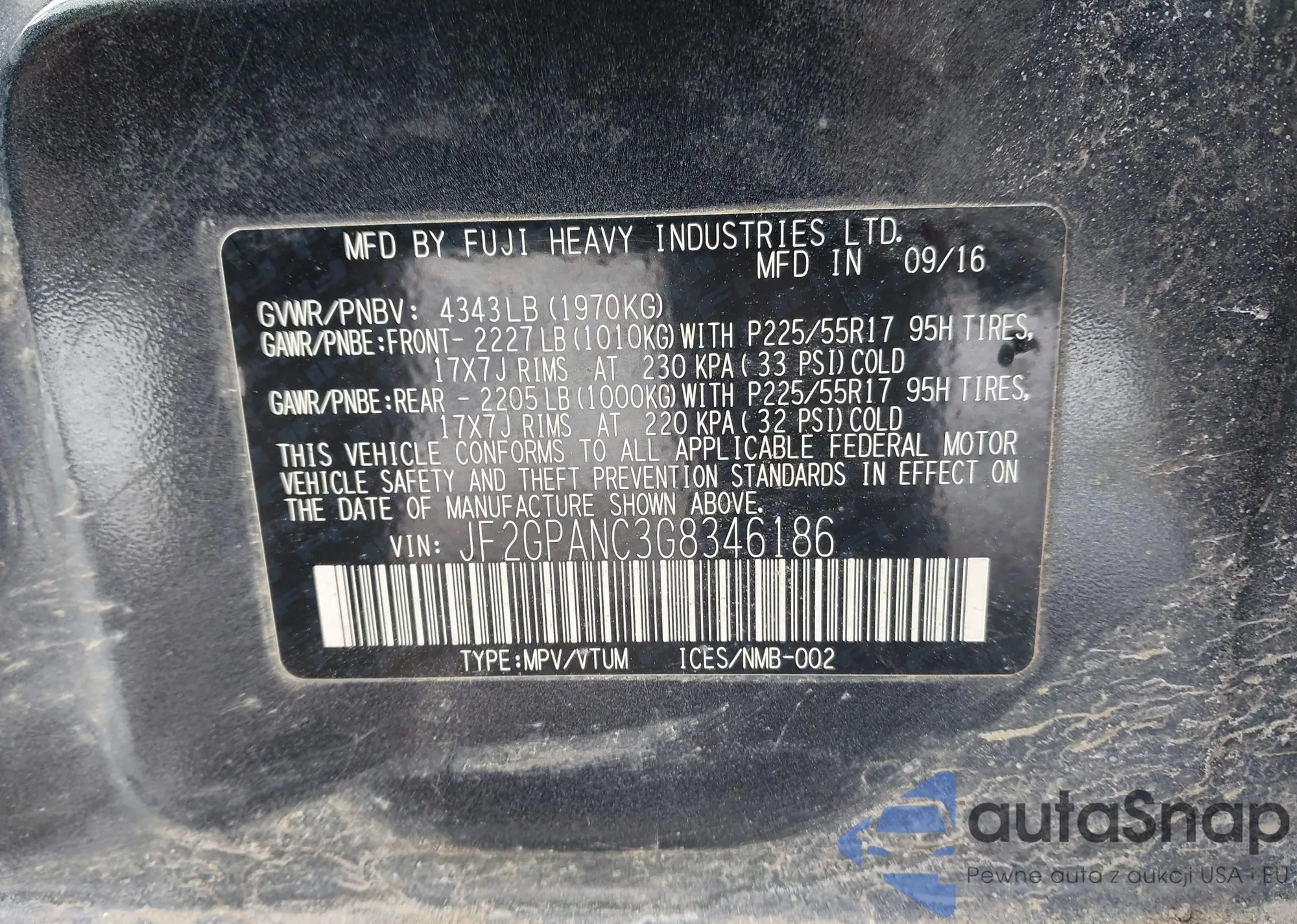 LOT: 44462254 VIN: JF2GPANC3G8346186