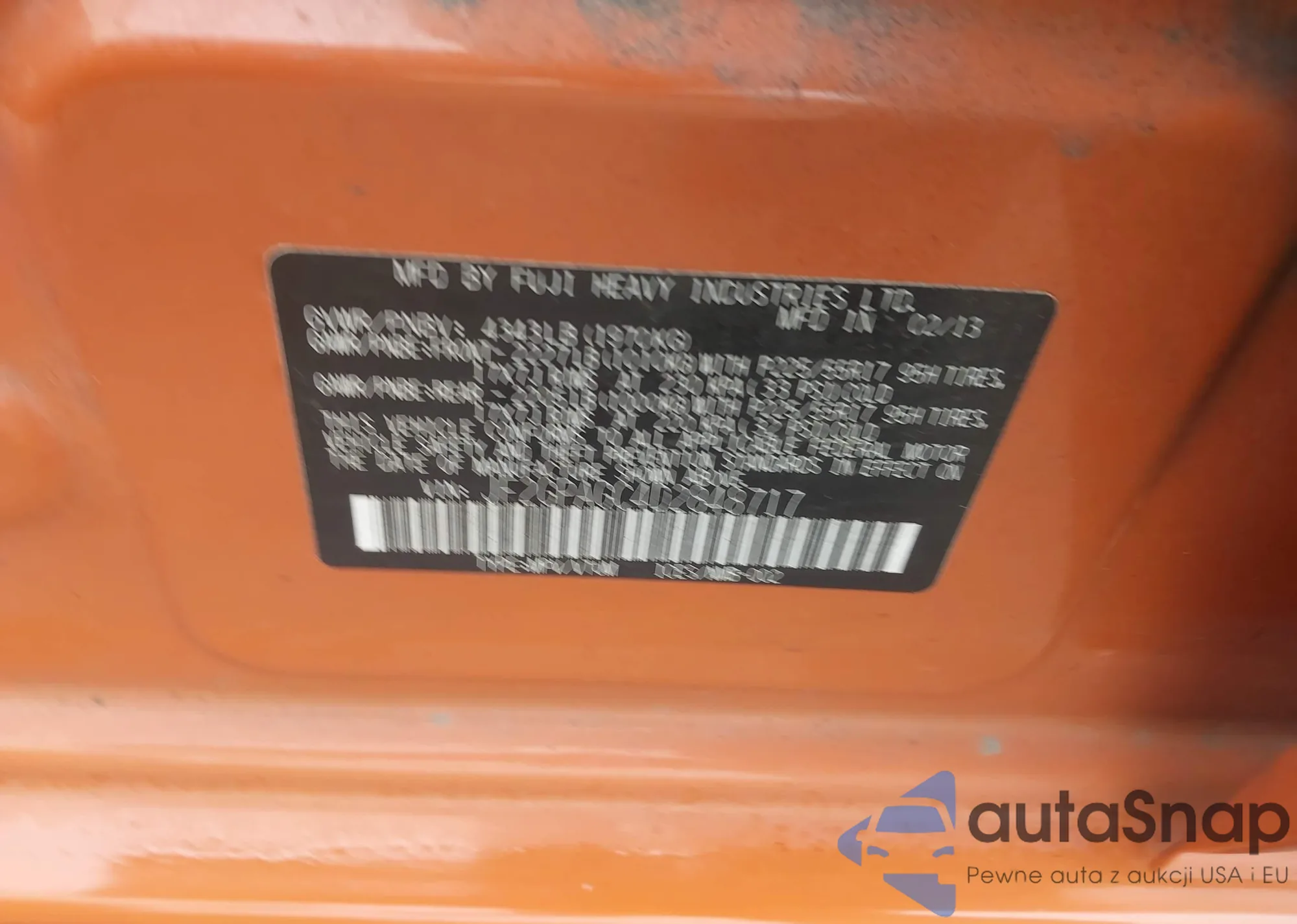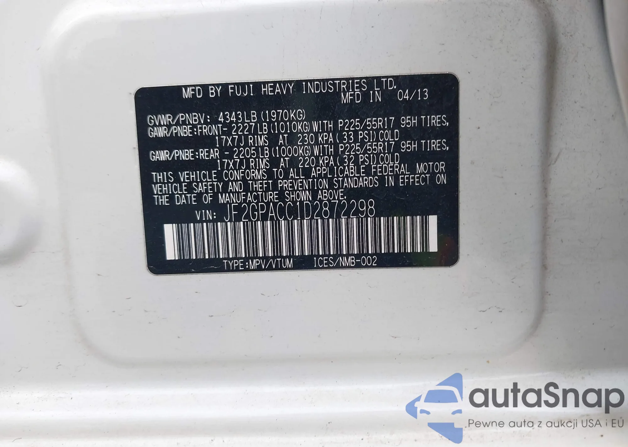 LOT: 44462830 VIN: JF2GPACC1D2872298
