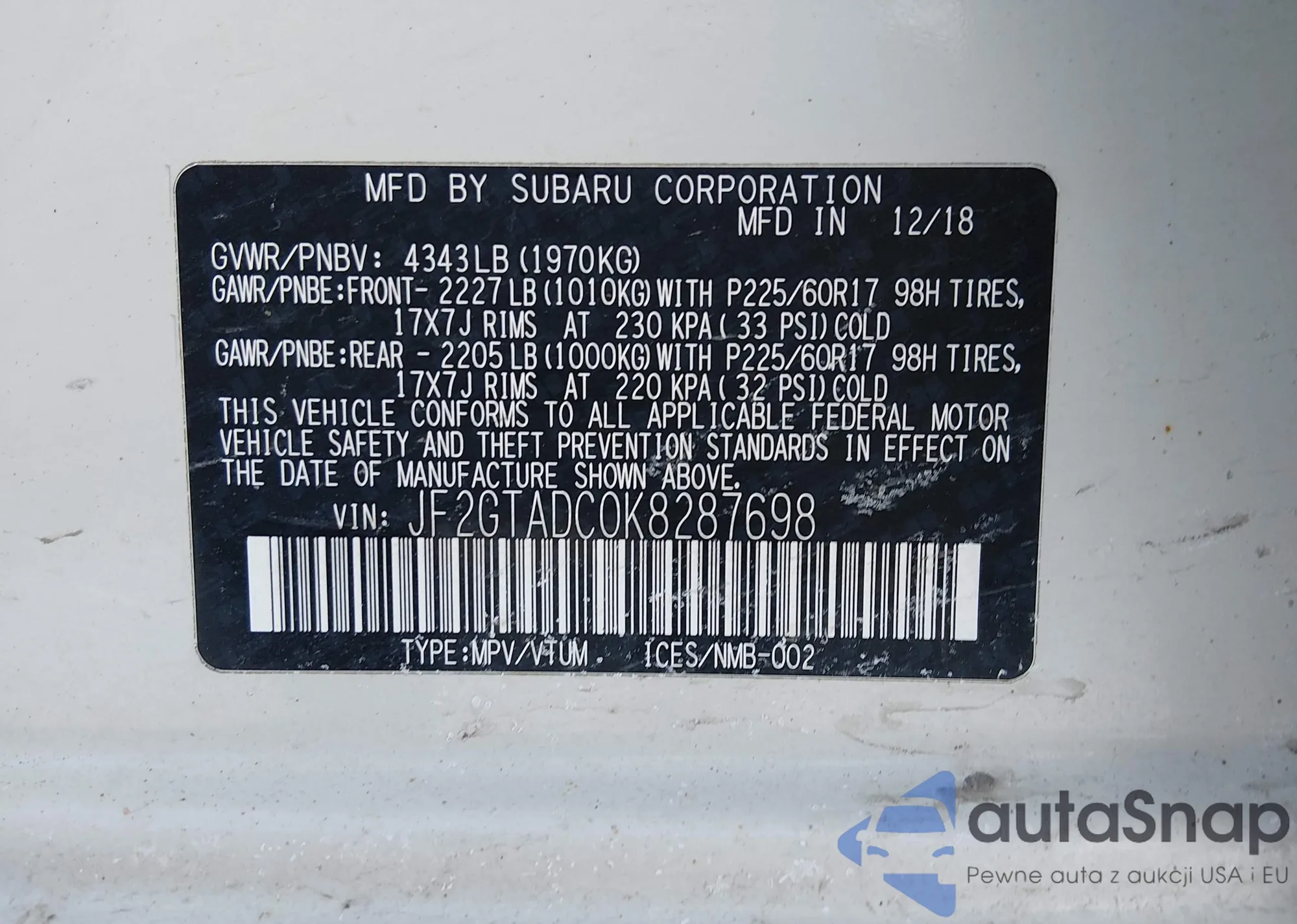 Kup Subaru XV II z USA