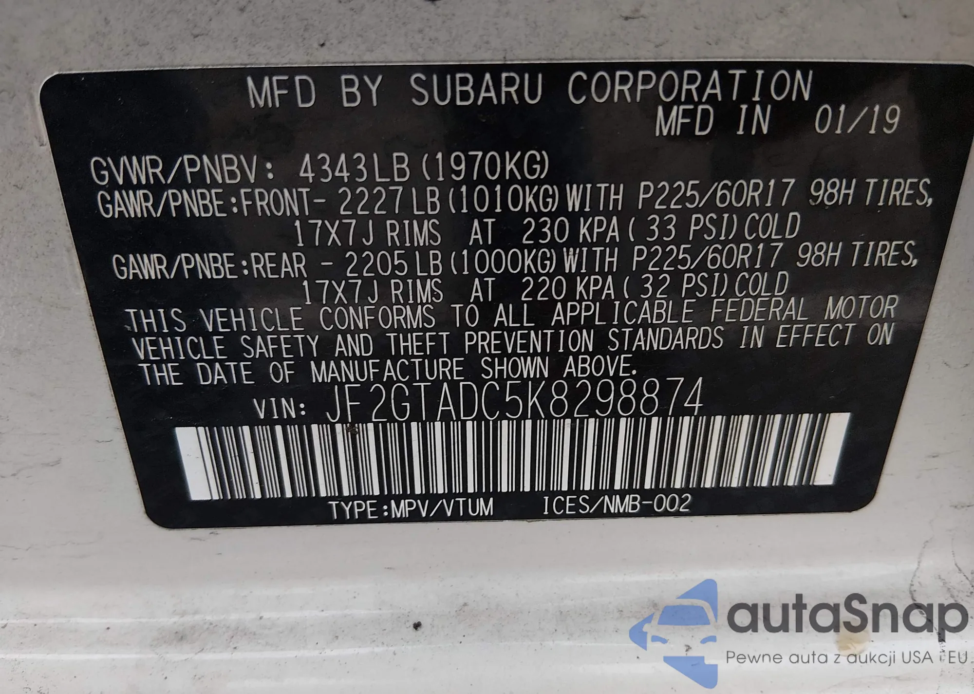 • VIN JF2GTAAC2KG248864