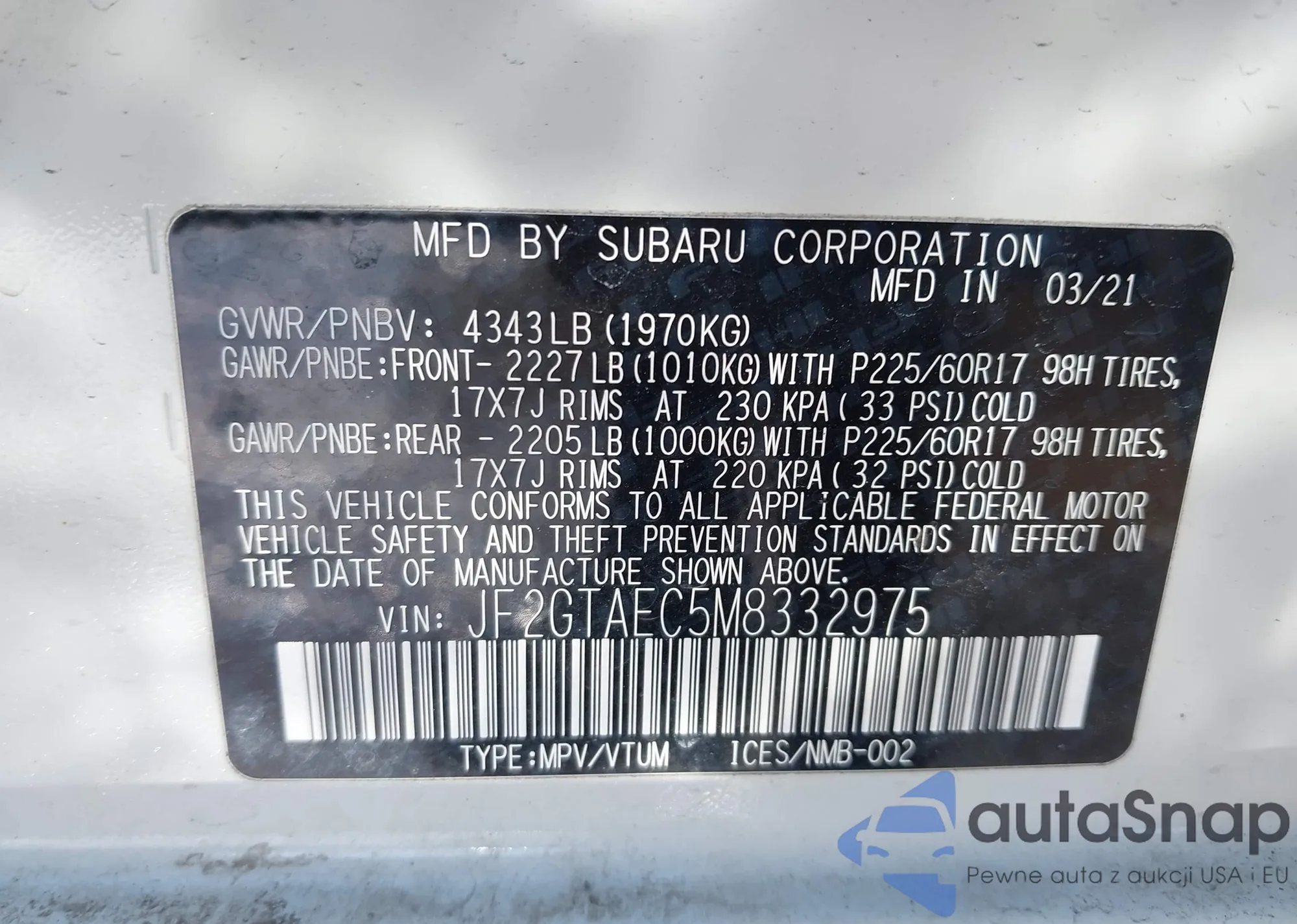 • VIN JF2GTAEC5M8332975