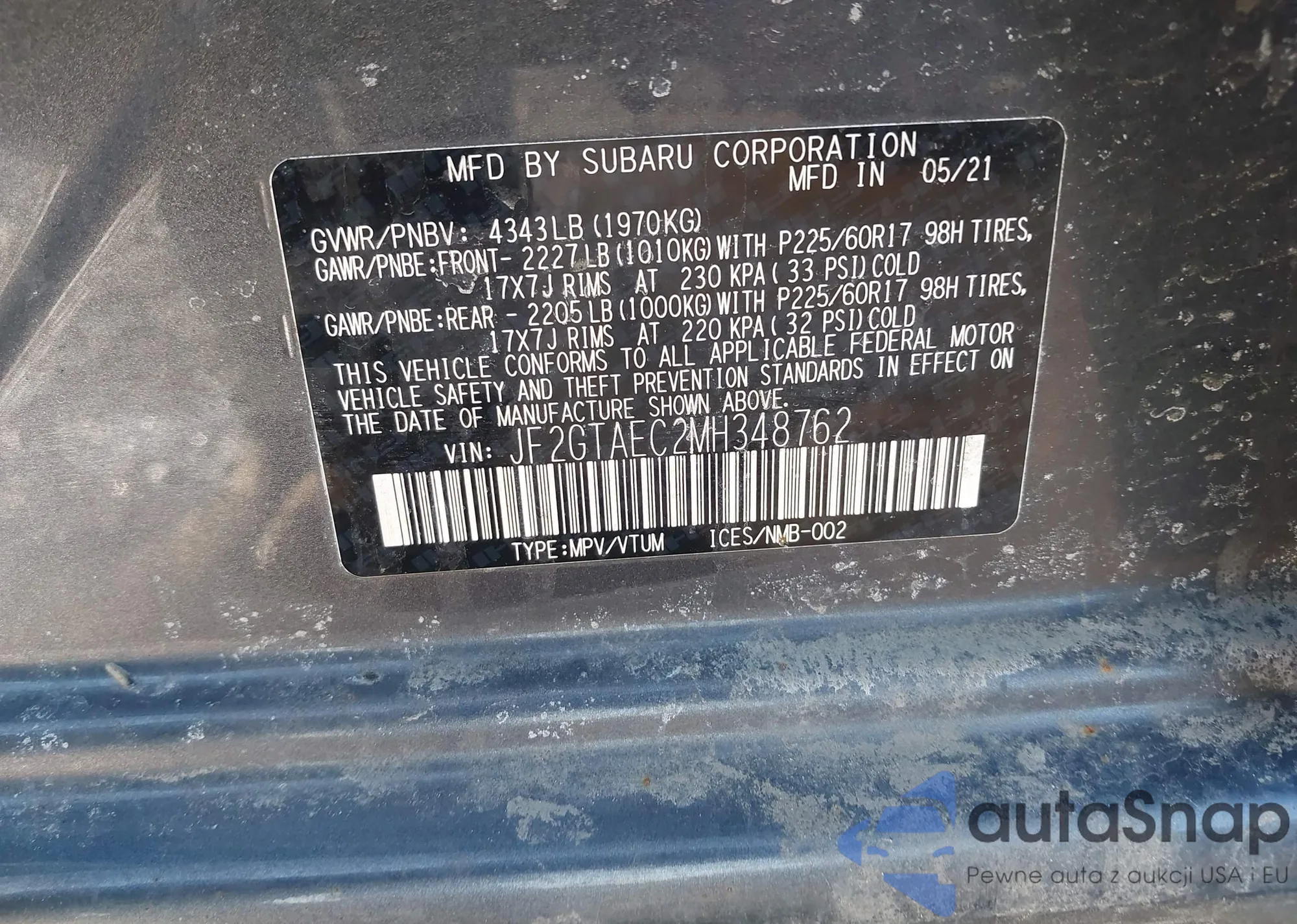 • VIN JF2GTAEC2MH348762