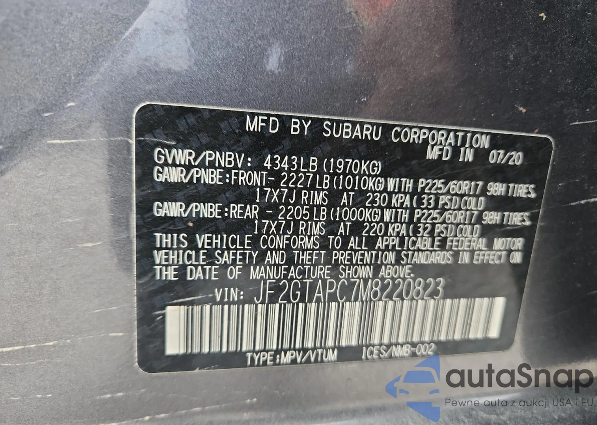 • VIN JF2GTAPC7M8220823