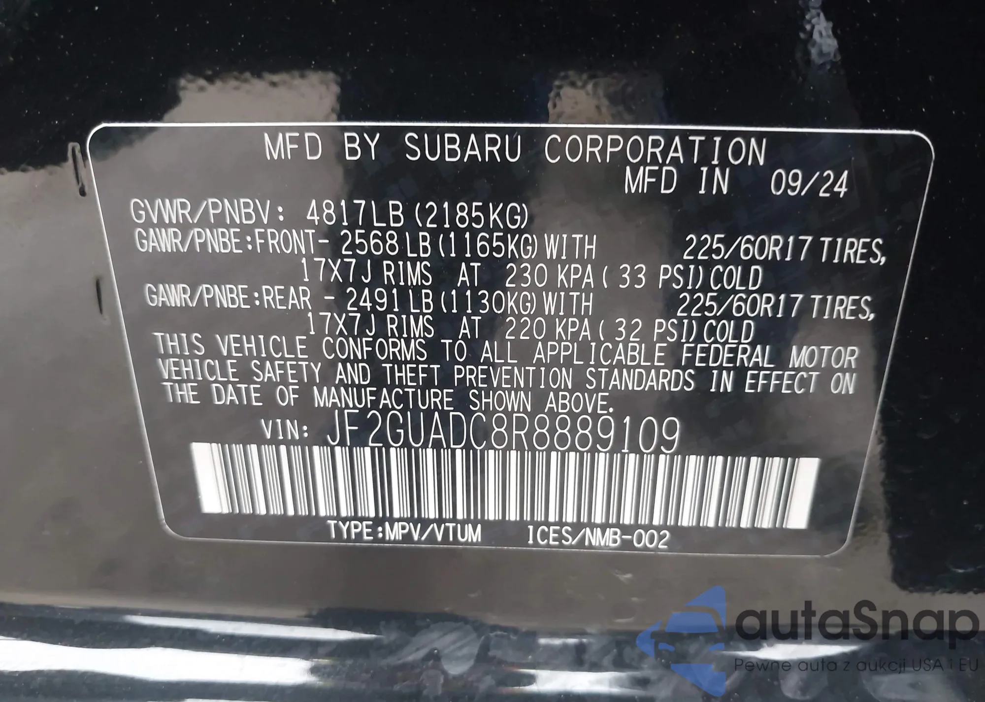 • VIN JF2GUADC8R8889109