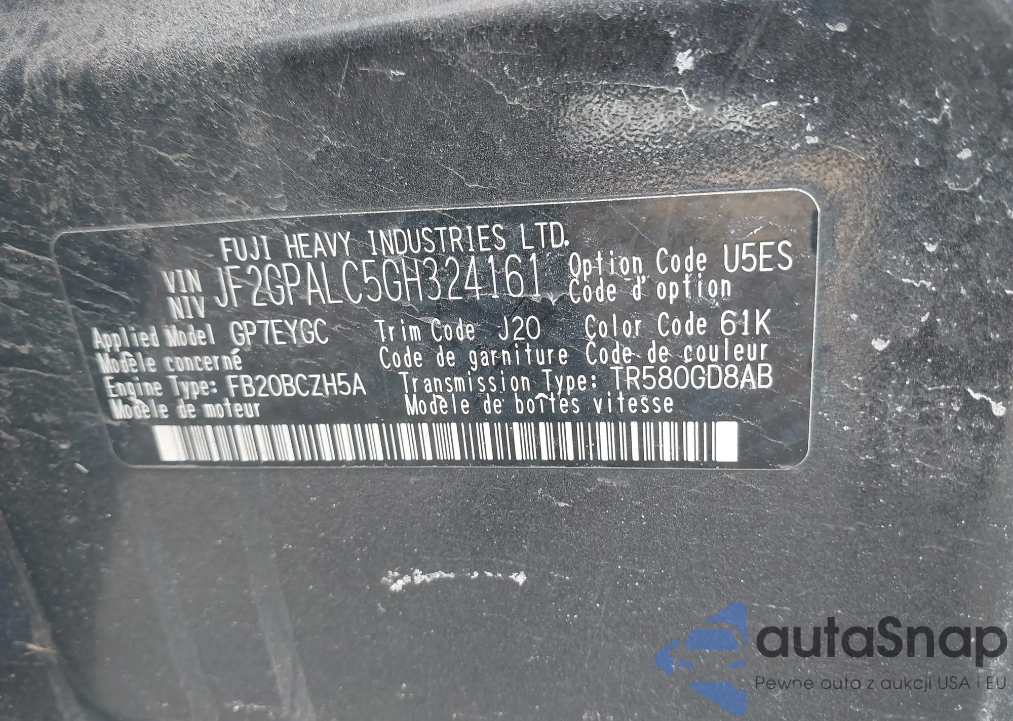 • VIN JF2GPALC5GH324161