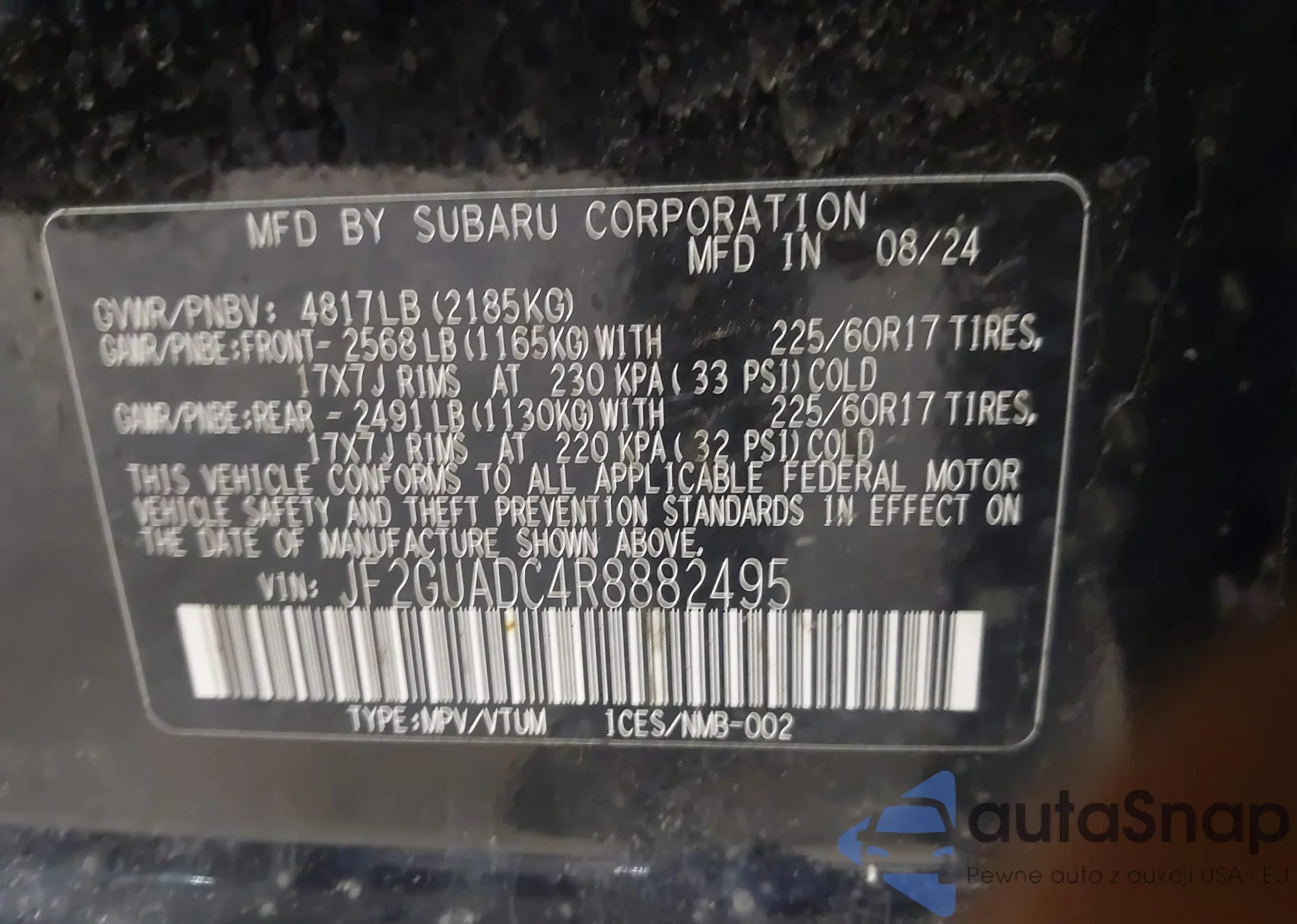 • VIN JF2GUADC4R8882495