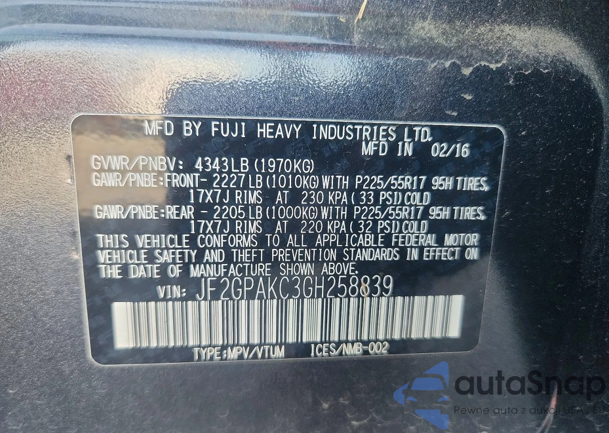• VIN JF2GPAKC3GH258839