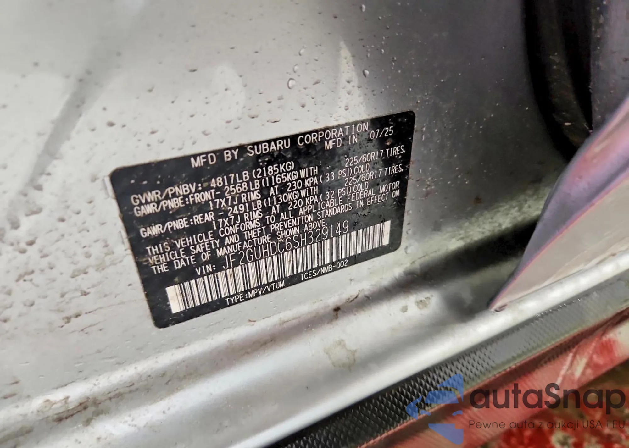 LOT: 76347555 VIN: JF2GTHMC8N8265946