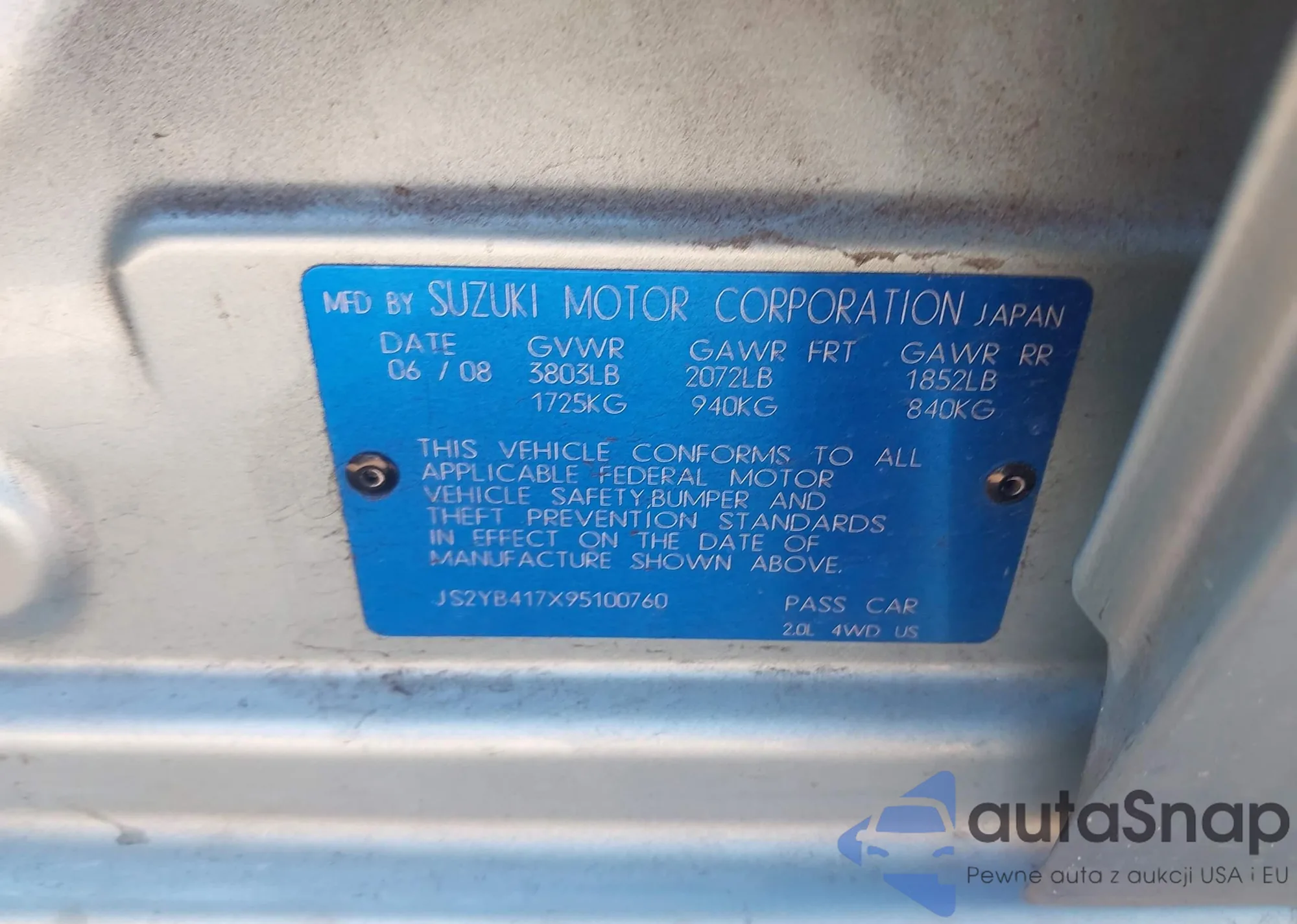 • VIN JS2YB417395100373
