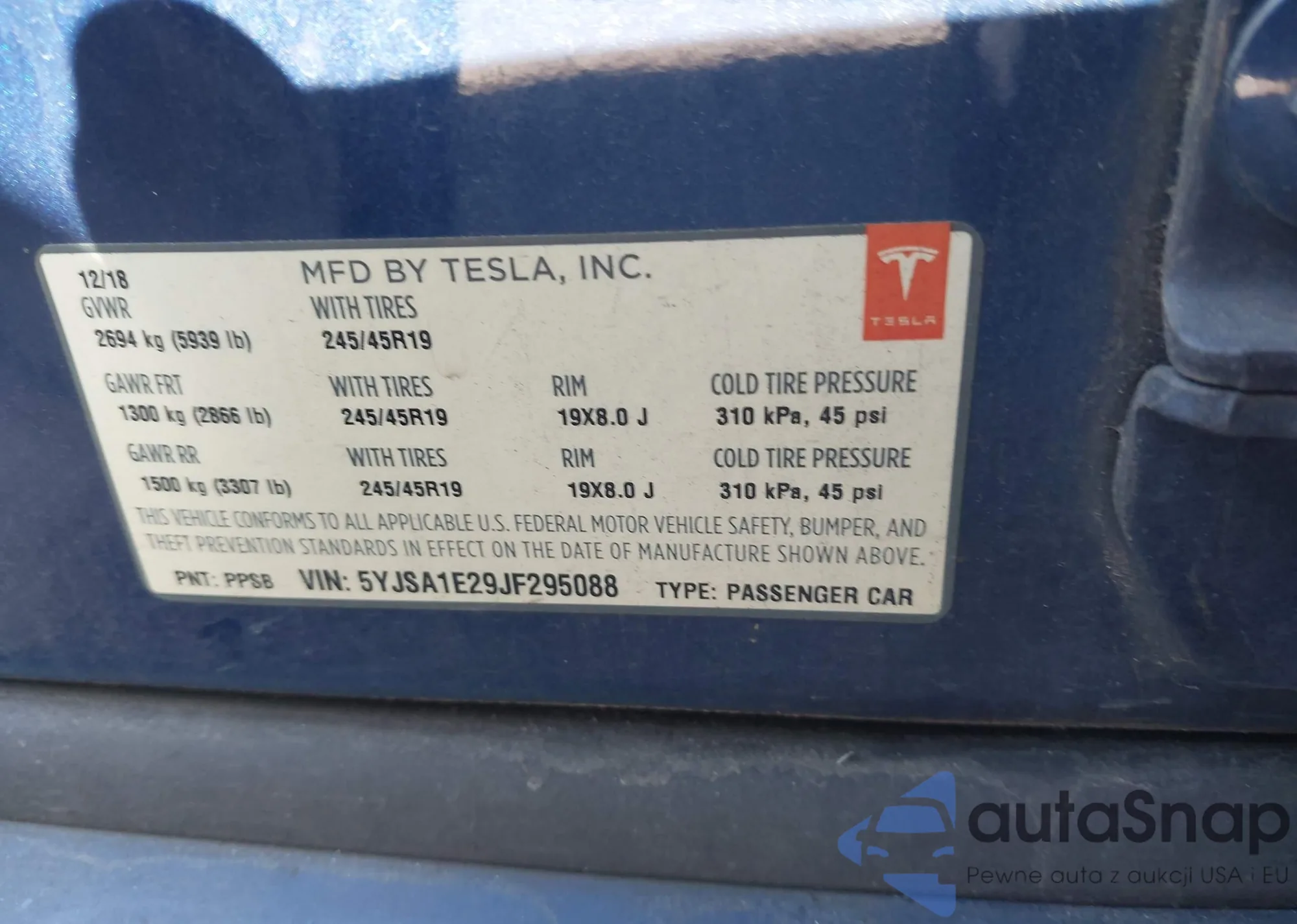 • VIN 5YJSA1E29JF295088