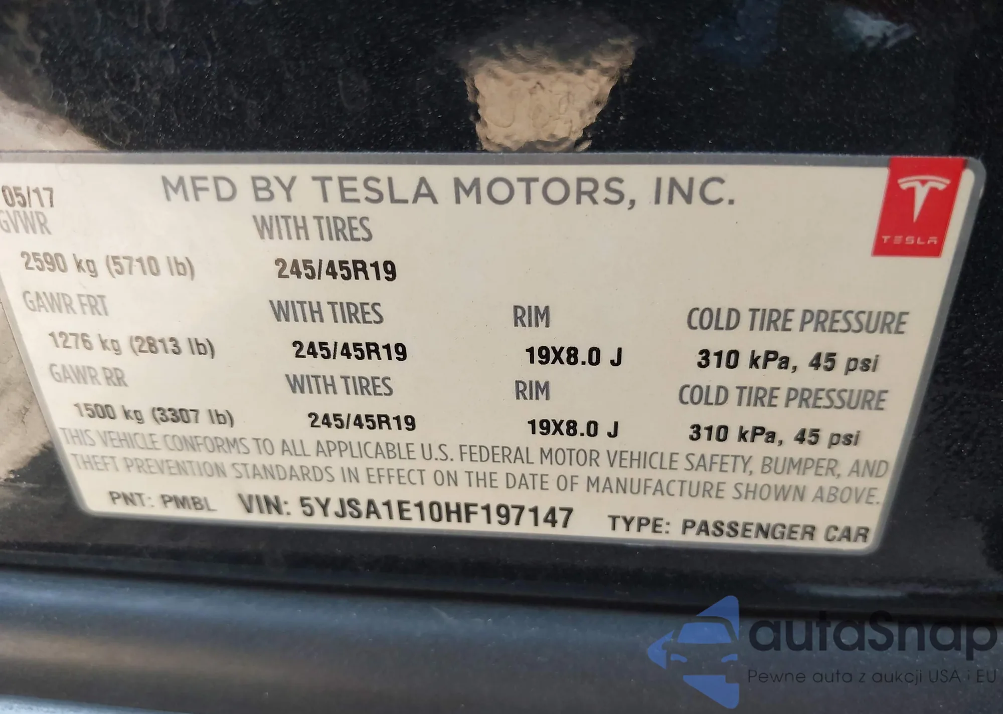• VIN 5YJSA1E10HF197147