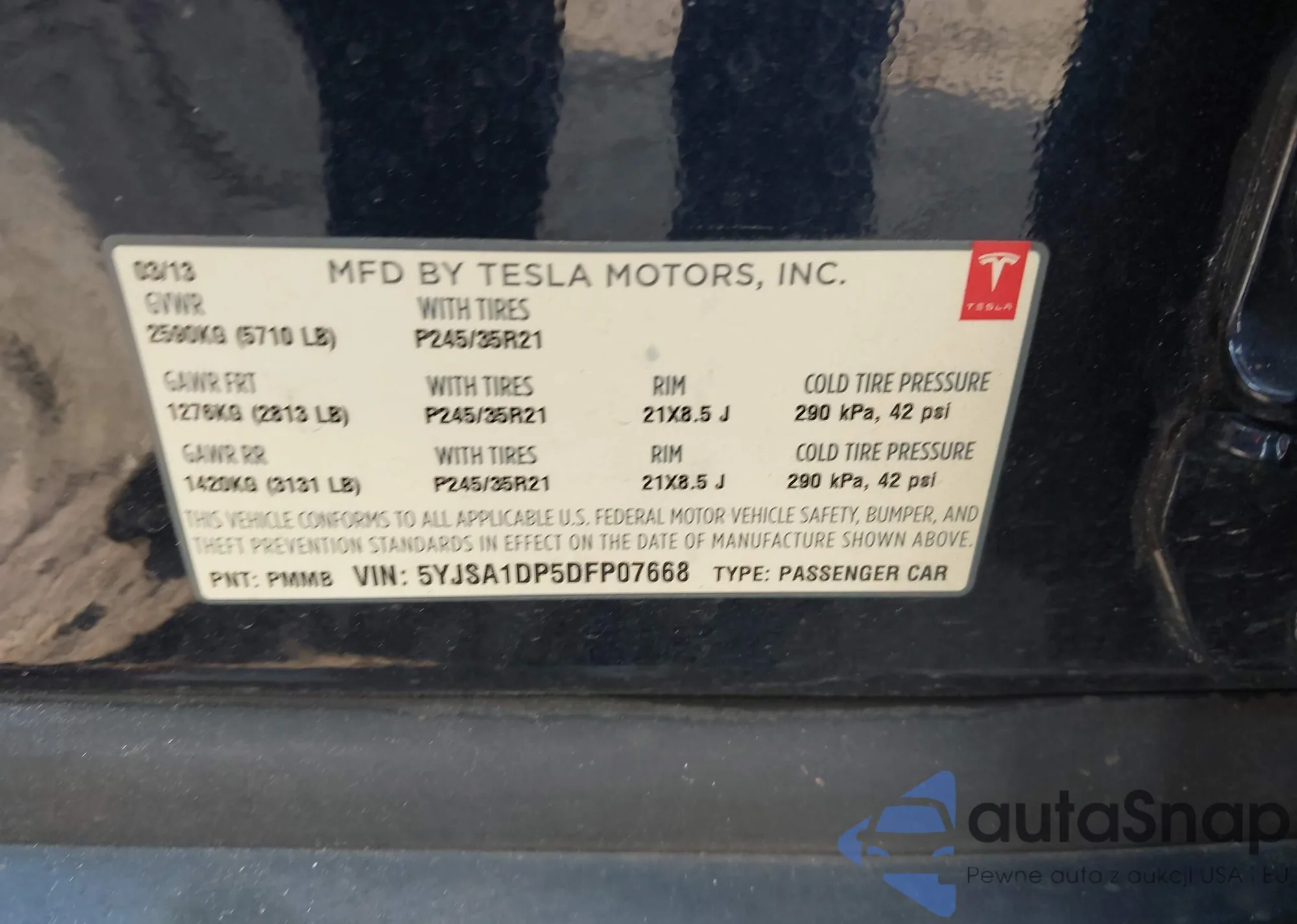 • VIN 5YJSA1DP5DFP07668