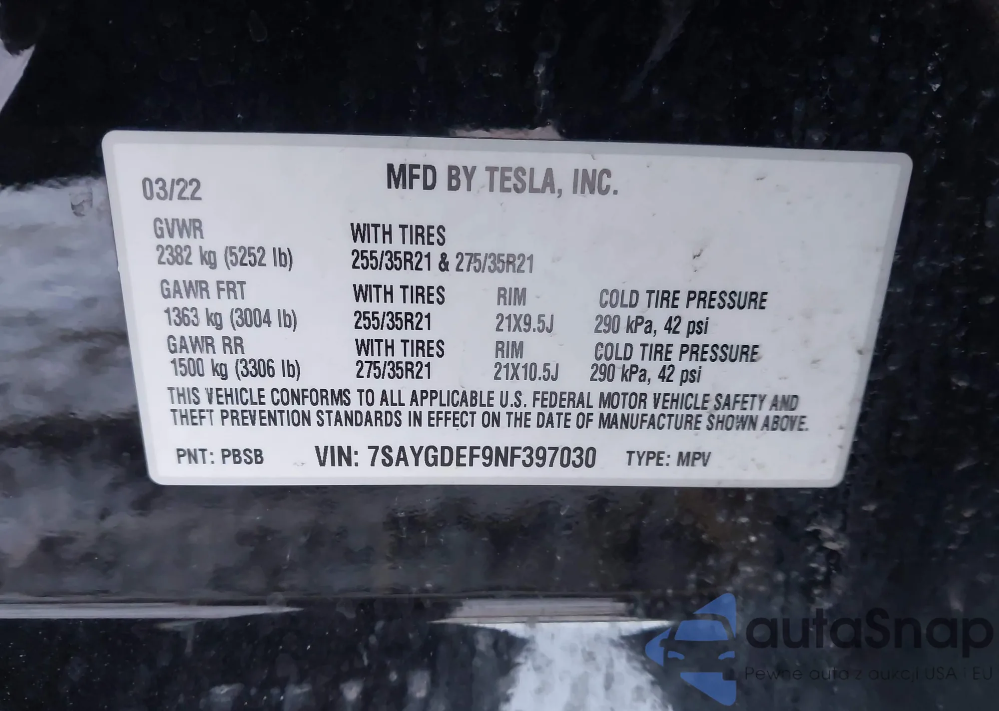 • VIN 7SAYGDEF9NF397030